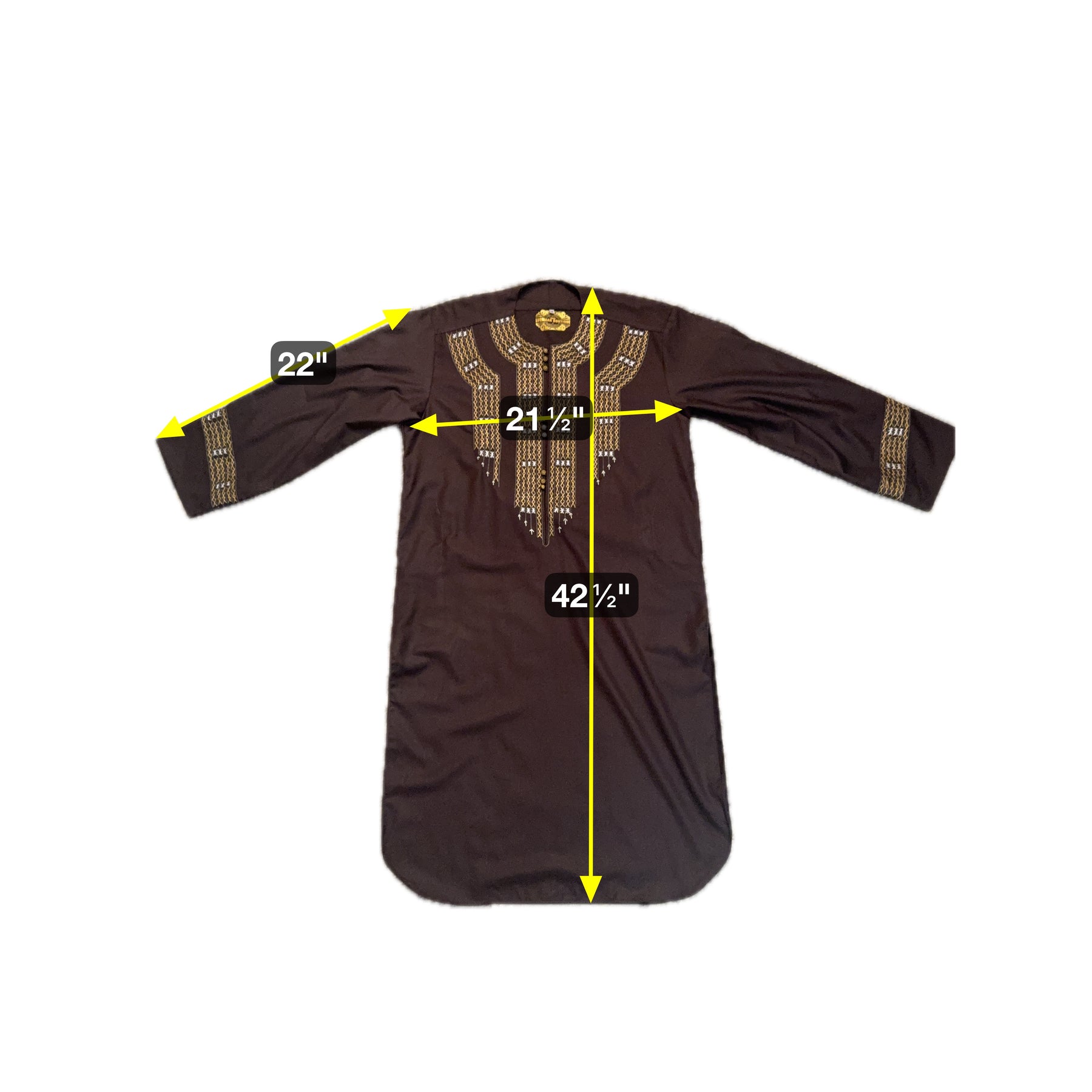 Chest Width: 21.5 in.Shoulder Width: 18.75 in.Body Length: 42.5 in.Back Length: 42.5 in.Sleeve Length: 22.0 in.Bottom Hem Width: 24.75 in.Sleeve Opening Width: 7.0 in.Pants/tumban: 38.0 in.