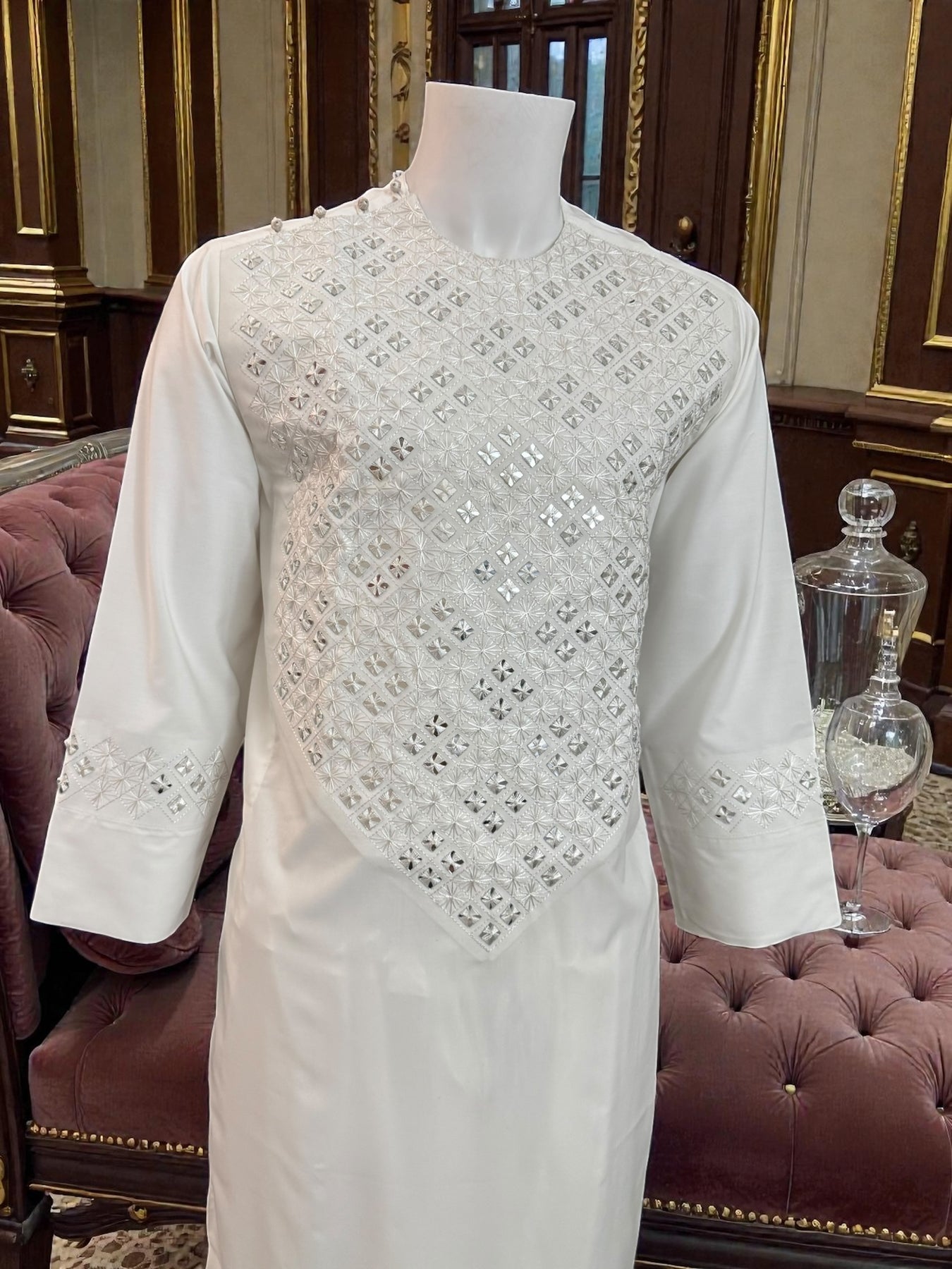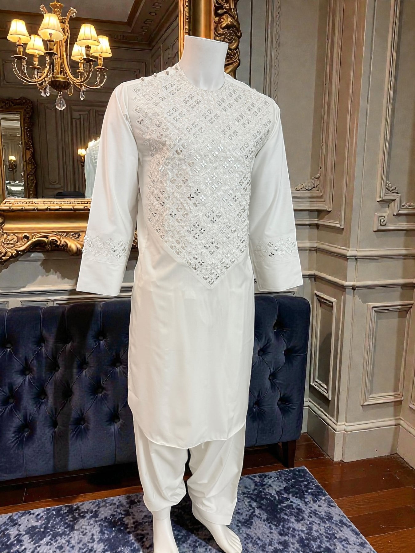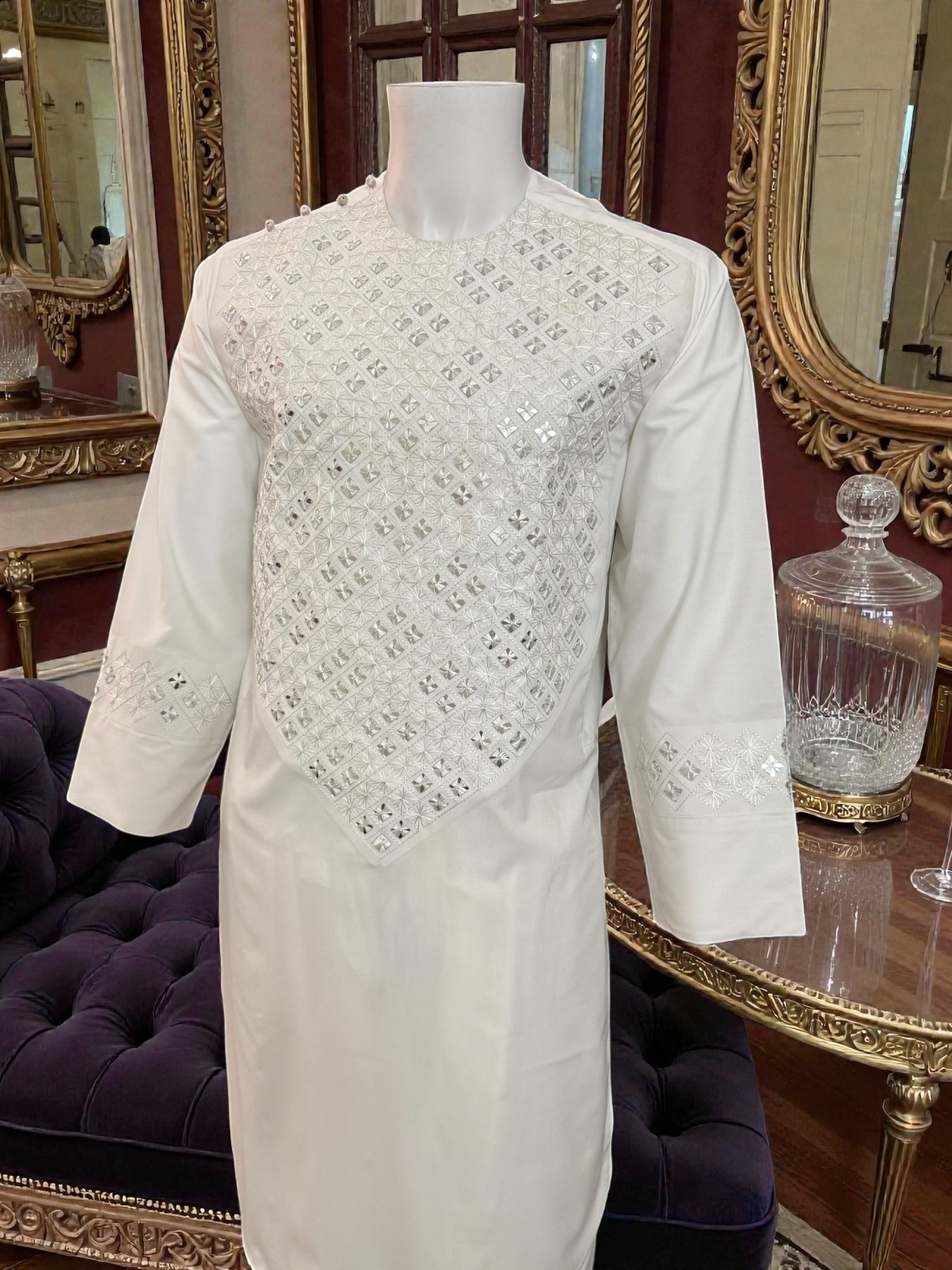 - Handmade khamakdozi embroidery with mirror work