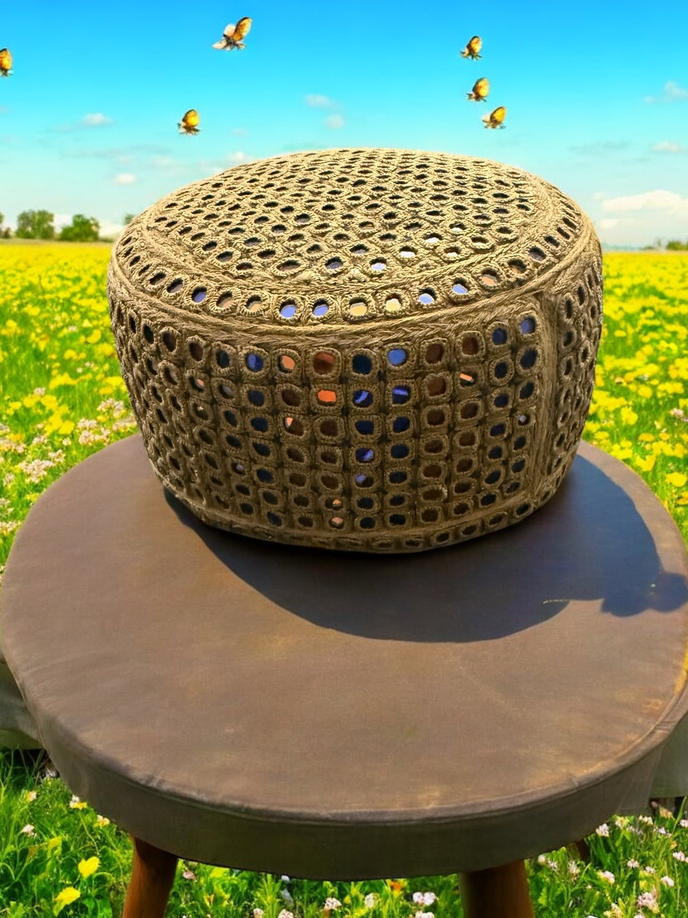 Handcrafted Brown Embroidered Cap with Mirror Work – Traditional Afghan Men’s Hat