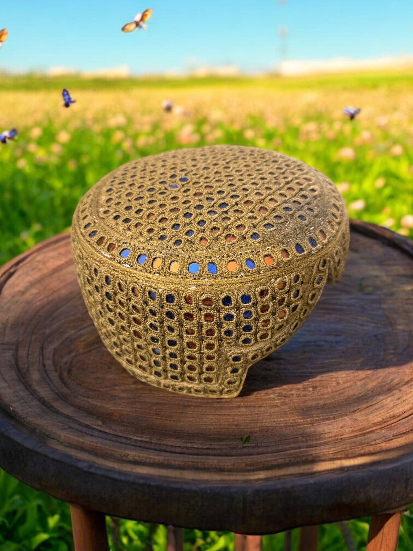 Handcrafted Brown Embroidered Cap with Mirror Work – Traditional Afghan Men’s Hat #2793