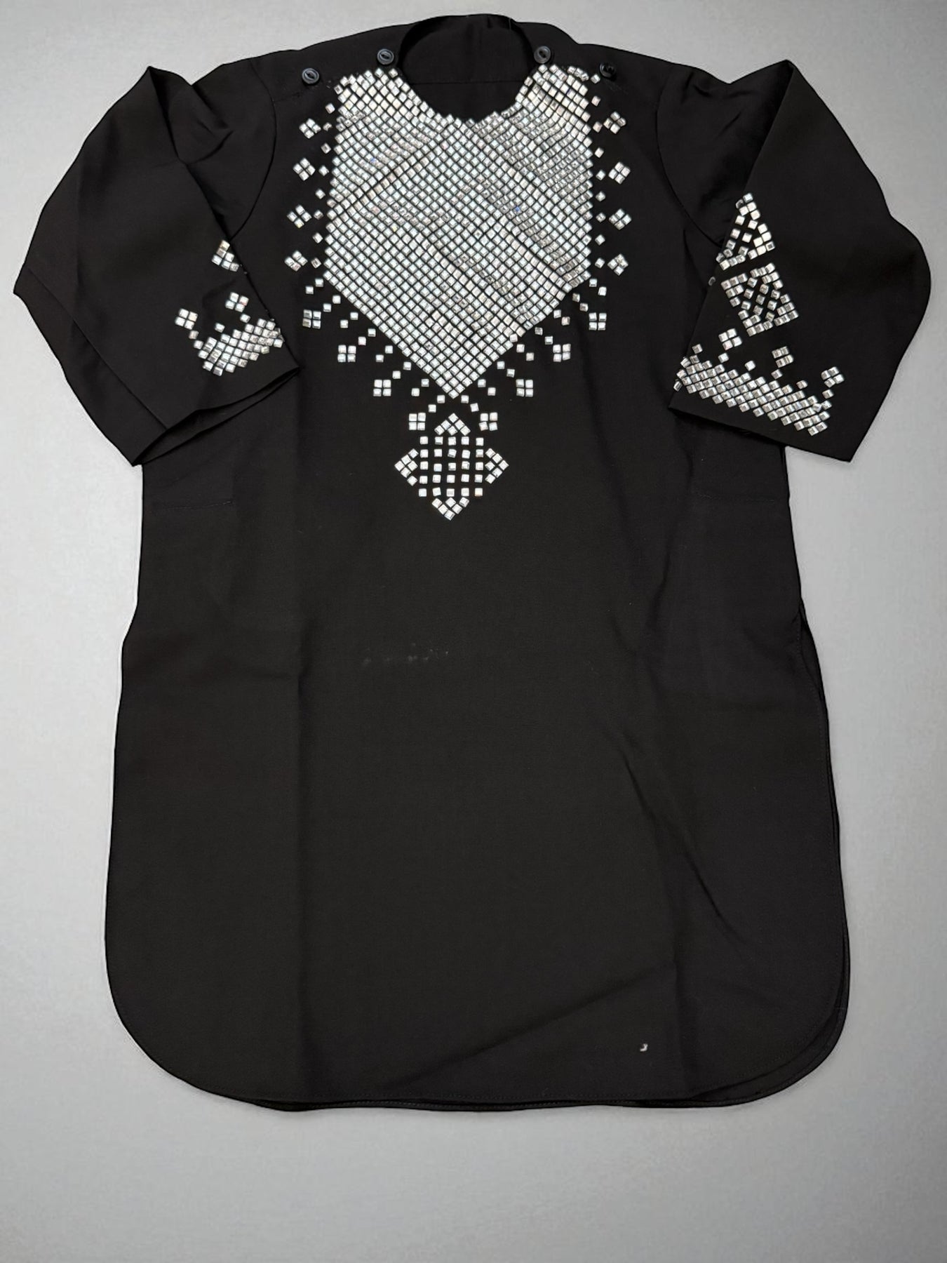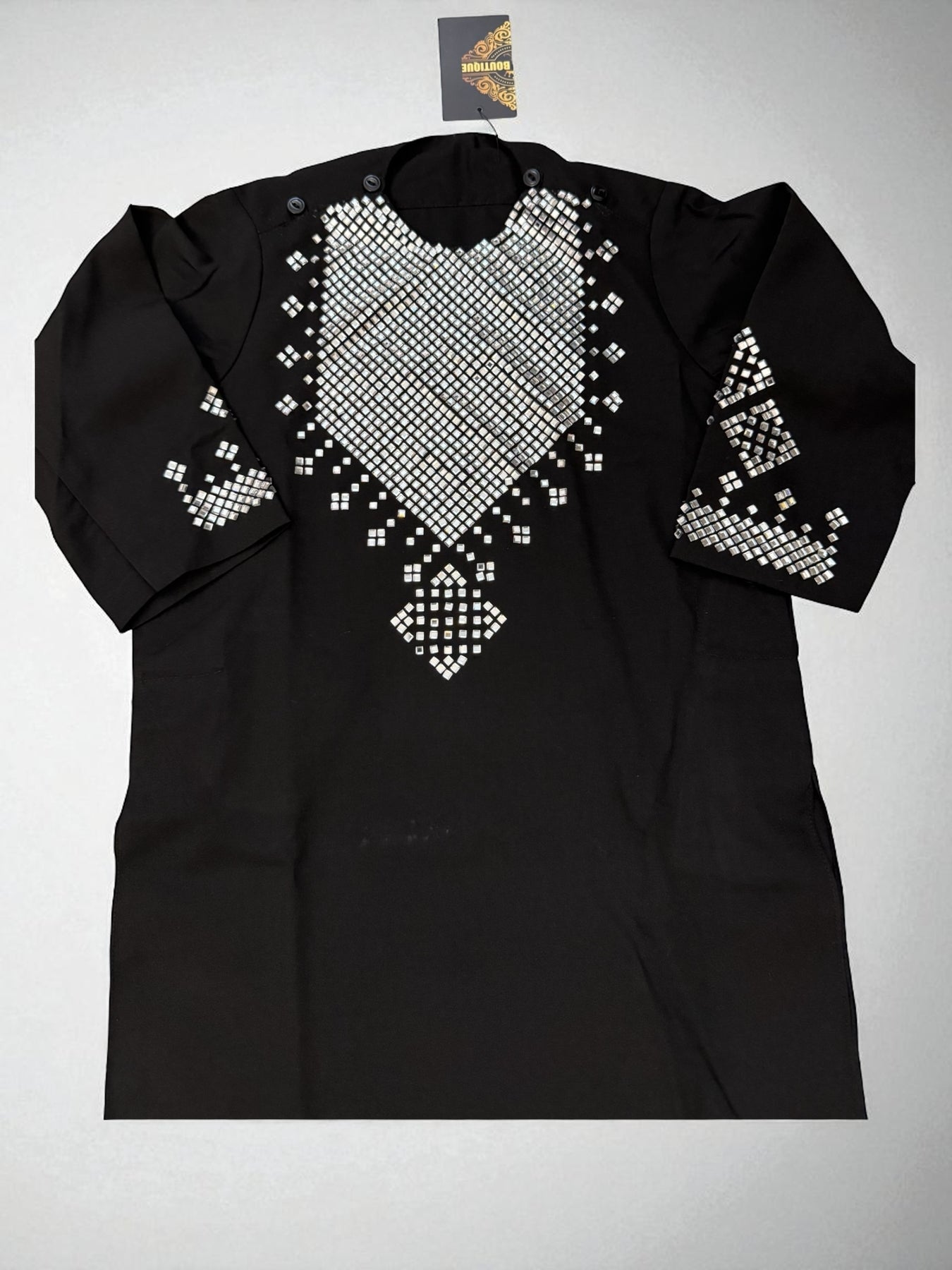 Chest Width: 14.0 in.Shoulder Width: 10.75 in.Body Length: 23.5 in.Sleeve Length: 13.0in.Sleeve Opening Width: 4.0 in.Pants/tumban: 17.5 in