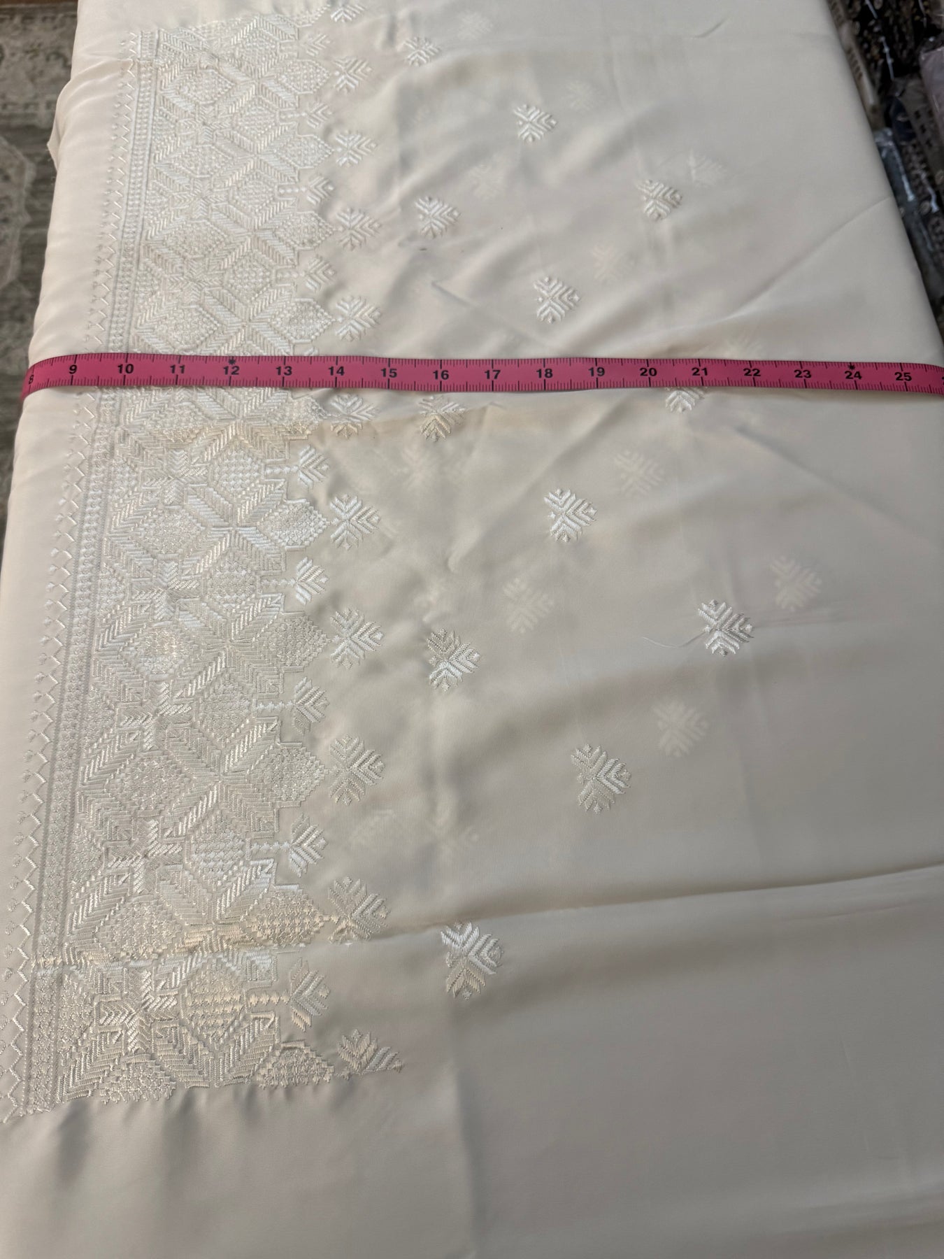 This listing is for unstitched computer khamakdozi. It measures 24”X 38” . It comes in a set of 2. So you are getting 2 matching pieces each measuring 24”X 38”.