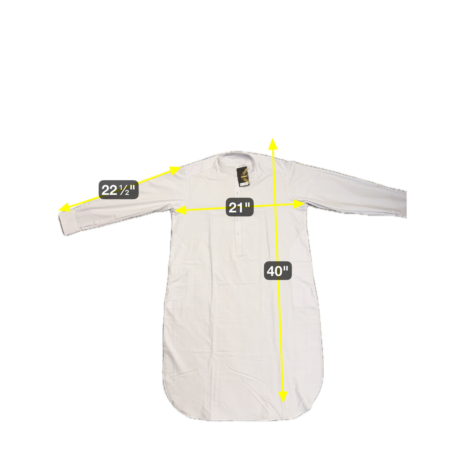 Chest Width: 21.0 in.Shoulder Width: 17.0 in.Body Length: 40.0 in.Sleeve Length: 22.5 in.Sleeve Opening Width: 4.5 in.Pants/tumban: 37.5 in.