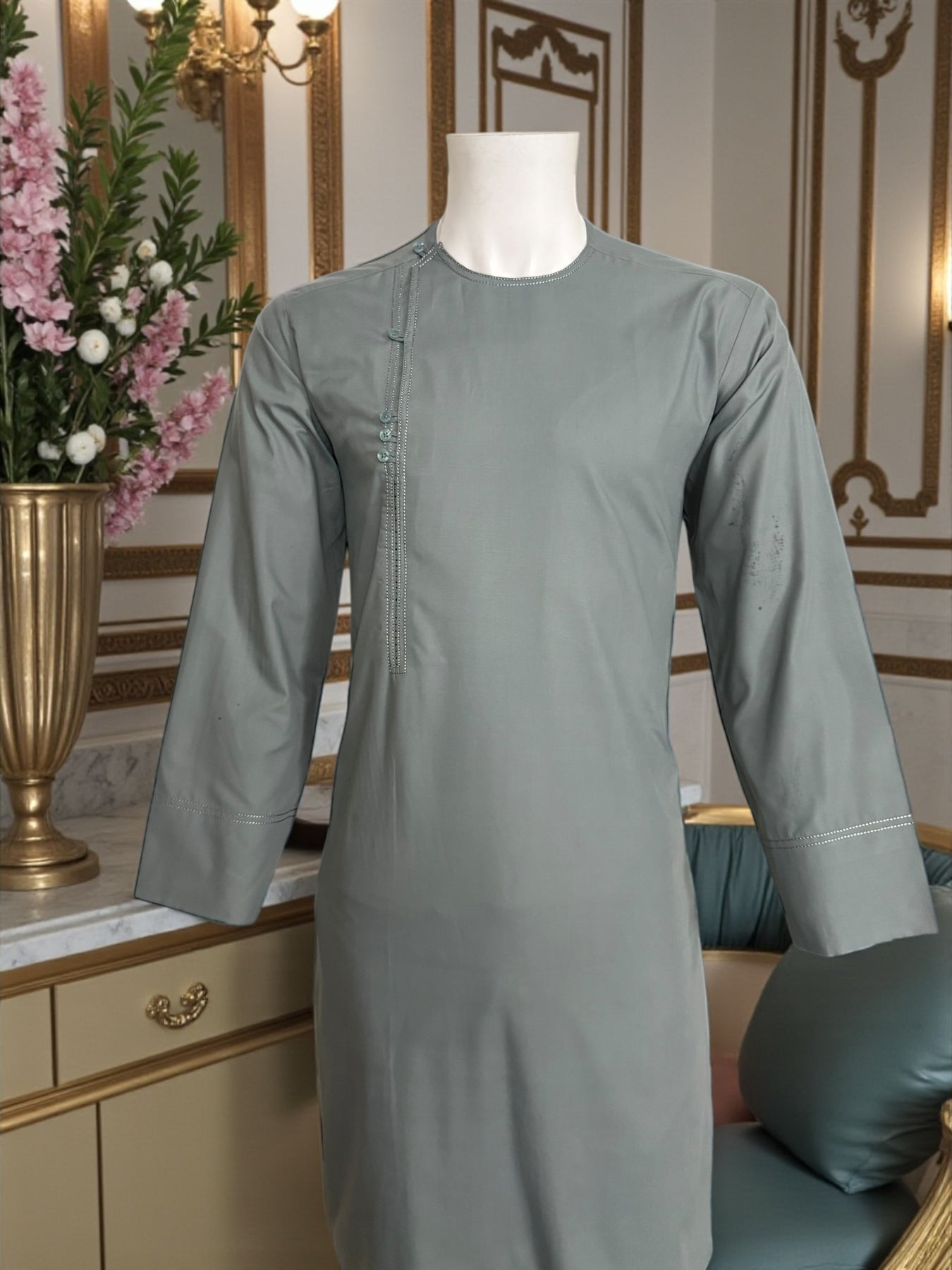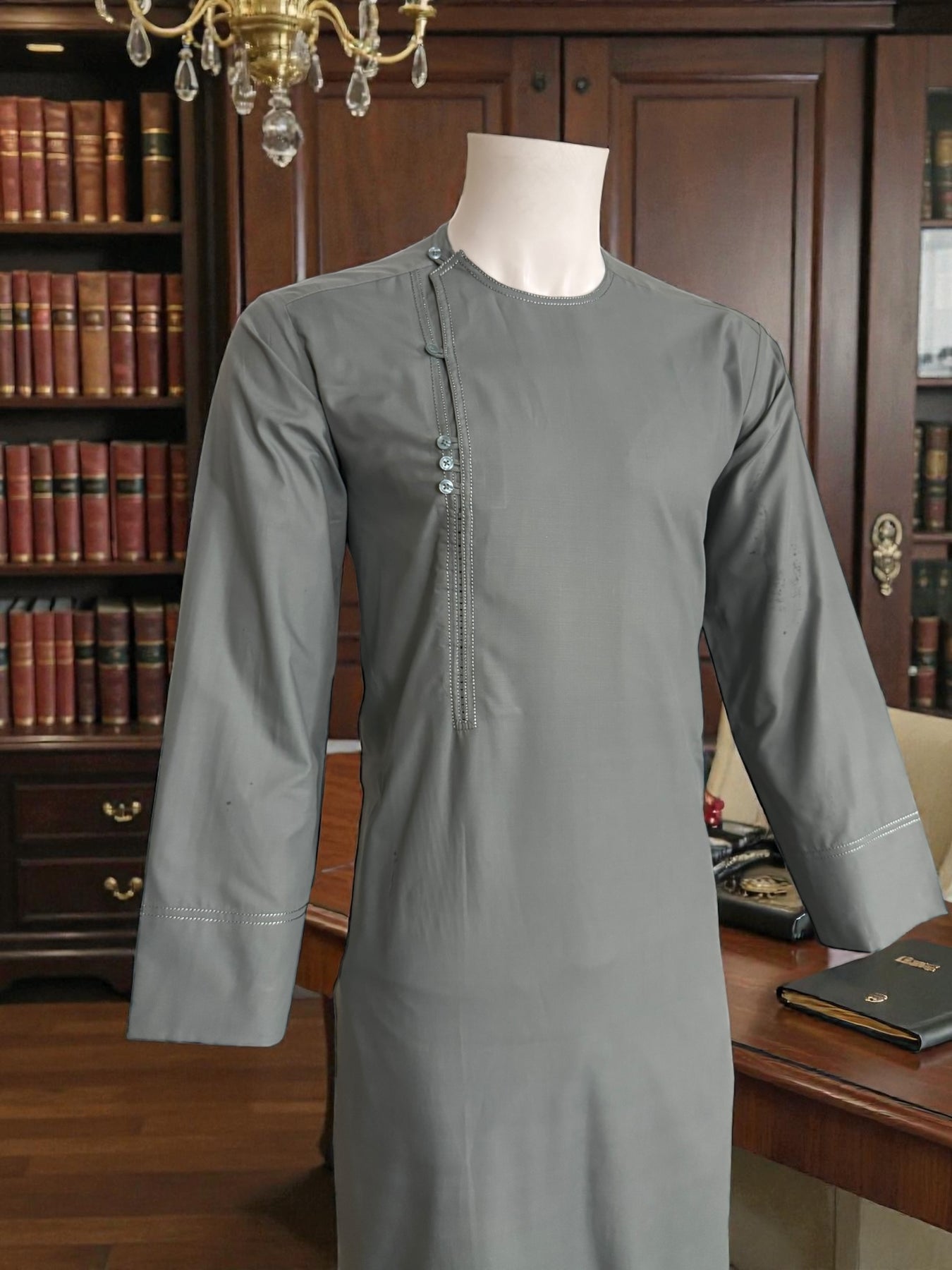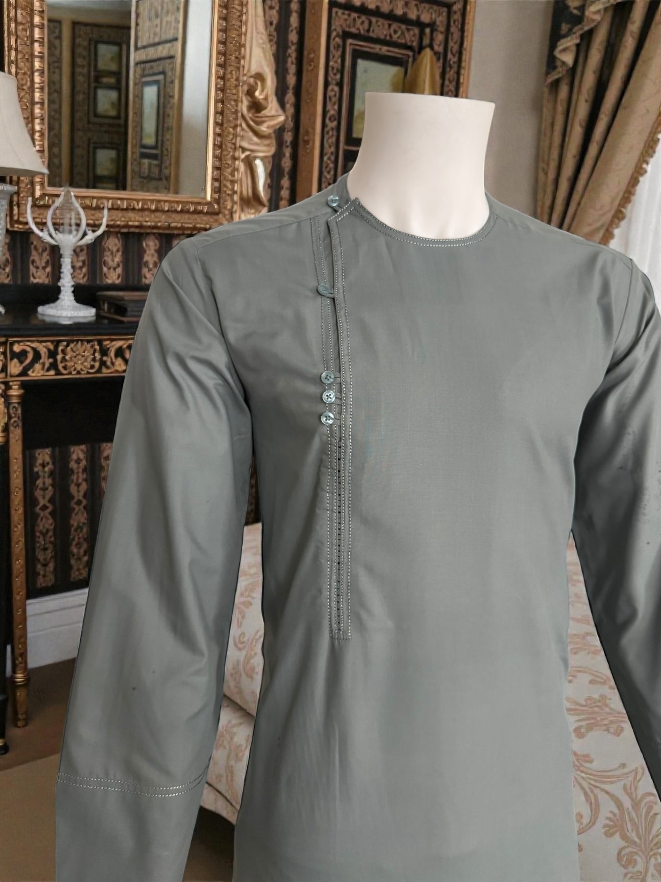 This Large Parahan Tunban set features a classic Qasimi-inspired design with a clean and traditional silhouette. Made from smooth, breathable fabric, the set offers comfort while maintaining a refined and structured look.