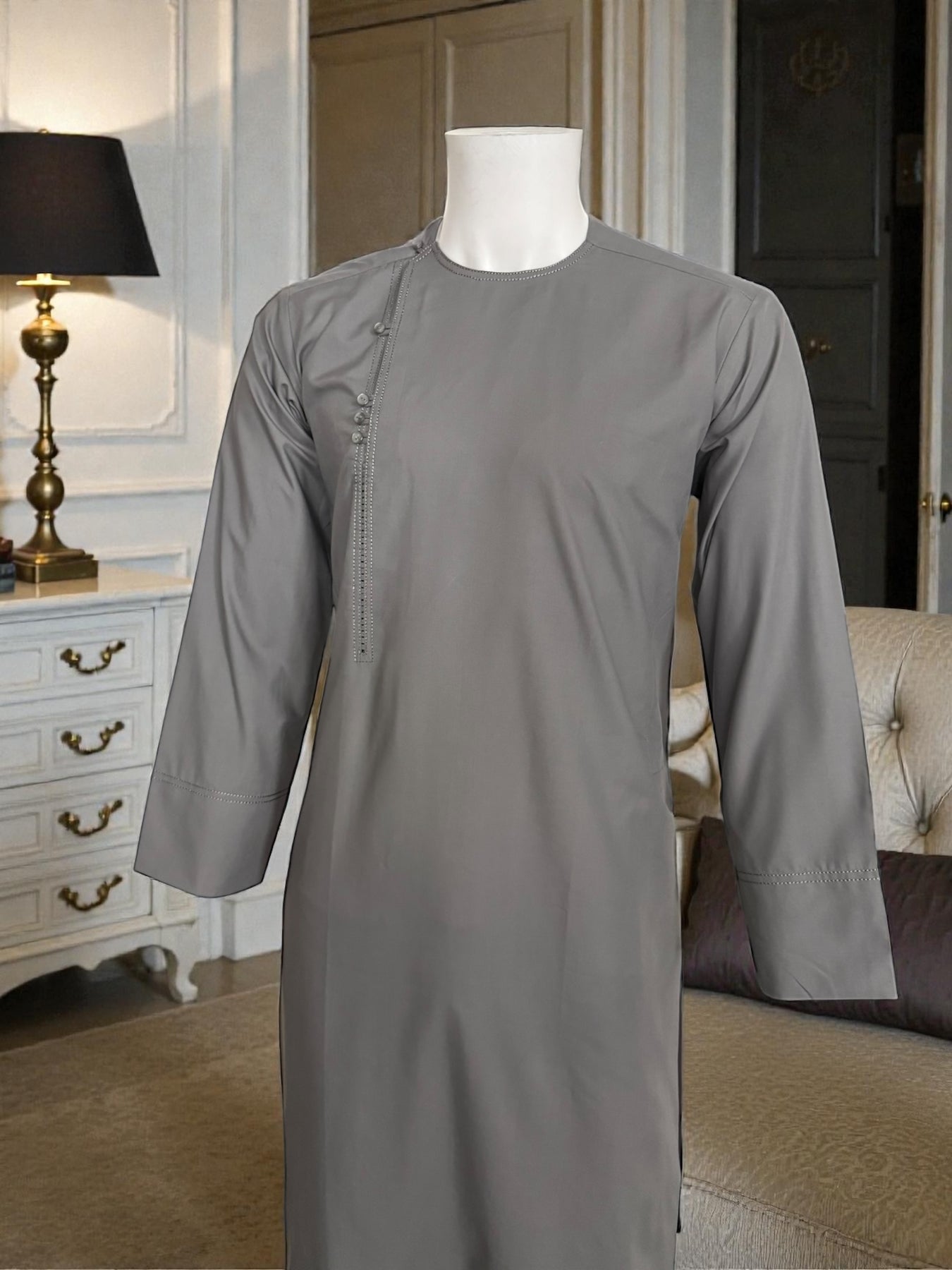This Large Parahan Tunban set features a classic Qasimi-inspired design with a clean and traditional silhouette. Made from smooth, breathable fabric, the set offers comfort while maintaining a refined and structured look.