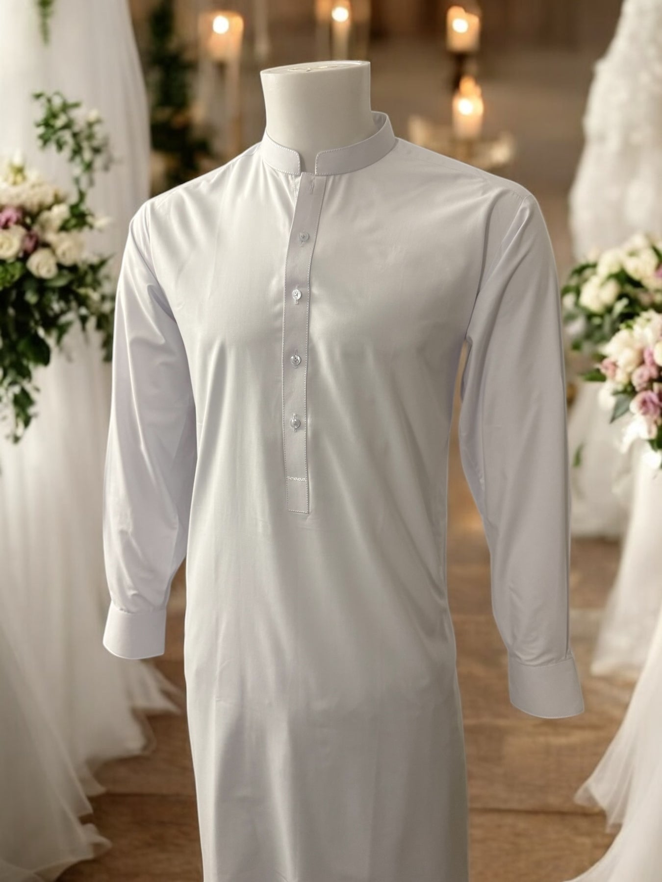 This Listing is for the White Parahan Tumban. The fabric is made by Grace. It is super soft to the touch. Best Quality fabric and workmanship.