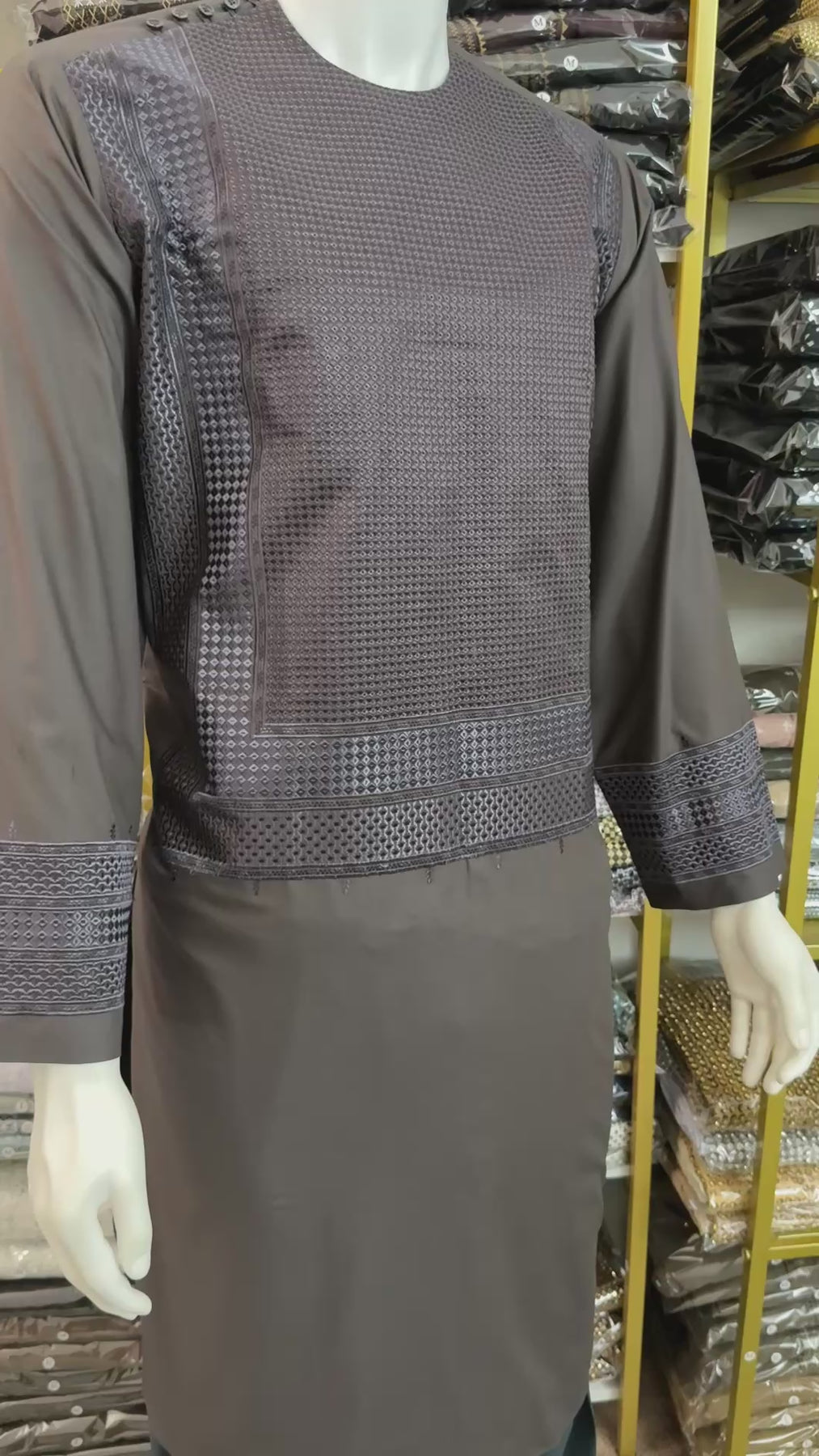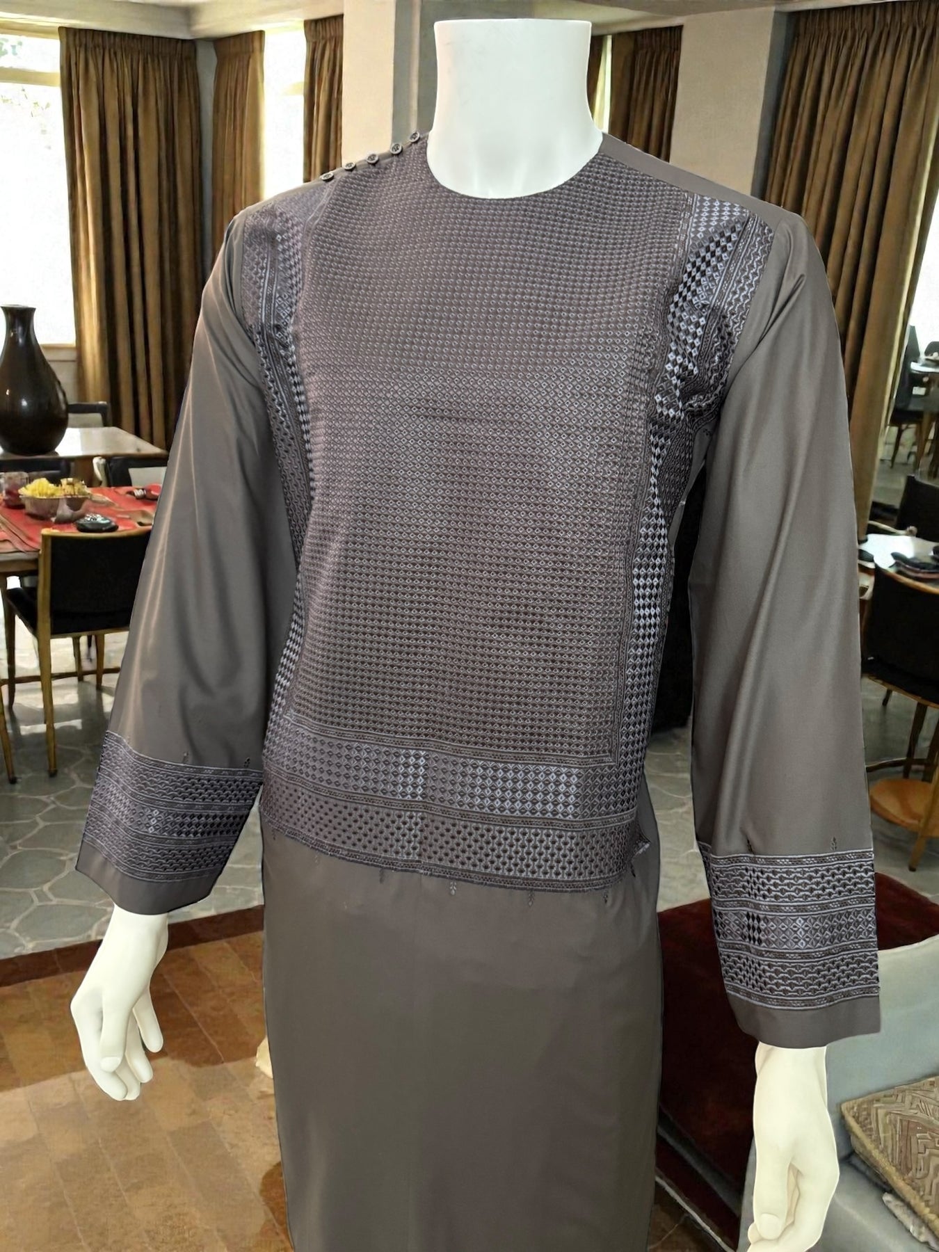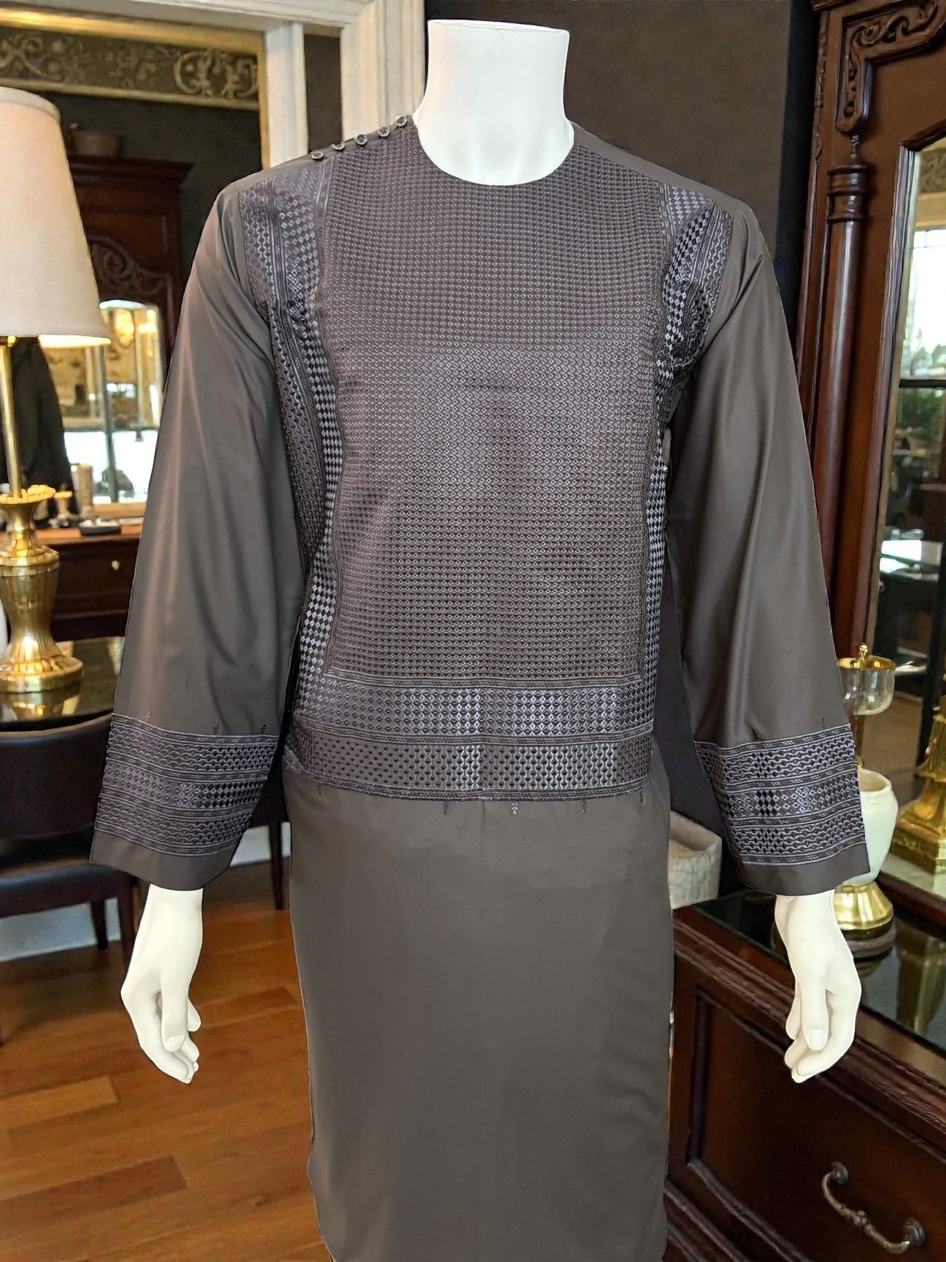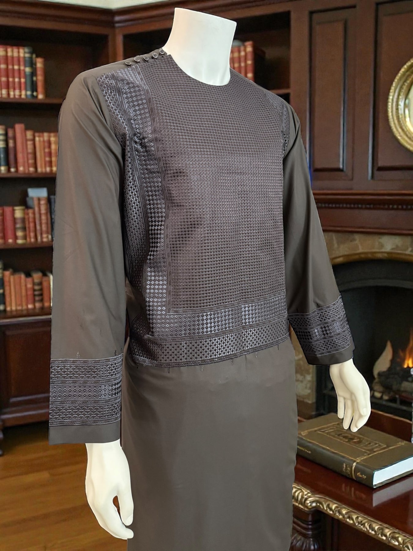 Afghan Men’s Embroidered Brown Suit – Premium Design Large