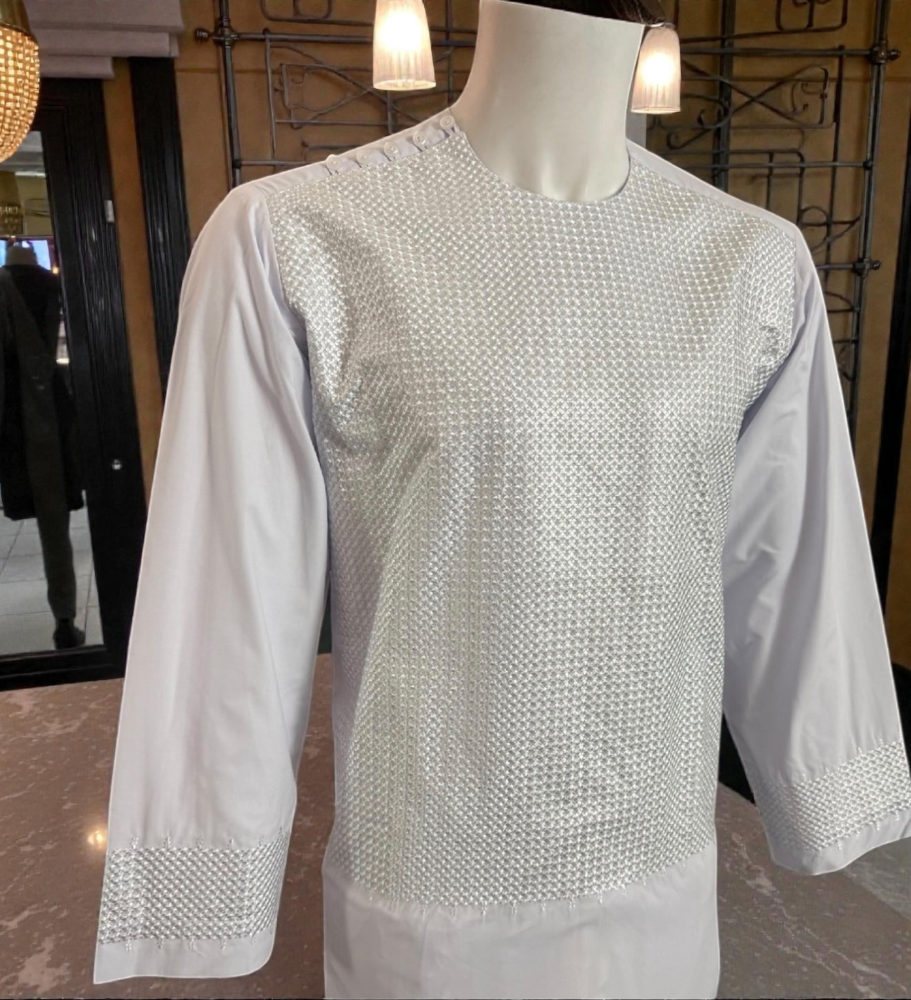 A traditional white Afghan Parahan Tumban crafted from a soft and breathable cotton-blend fabric. This outfit features fine embroidery across the chest, giving it a clean and classic look suitable for cultural events, formal gatherings, and everyday traditional wear. The matching tunban (pants) completes the full set, offering comfort and authenticity for any occasion.