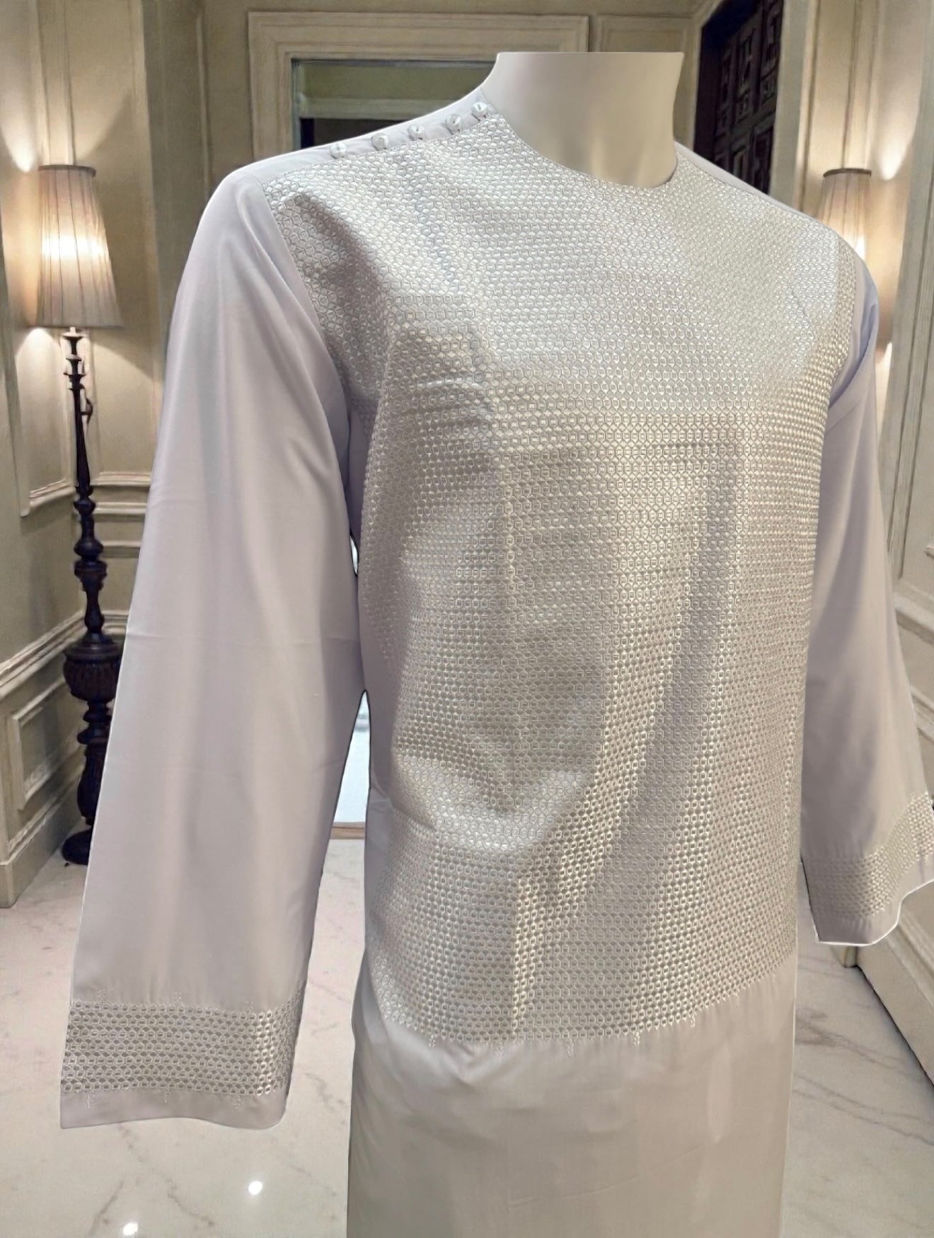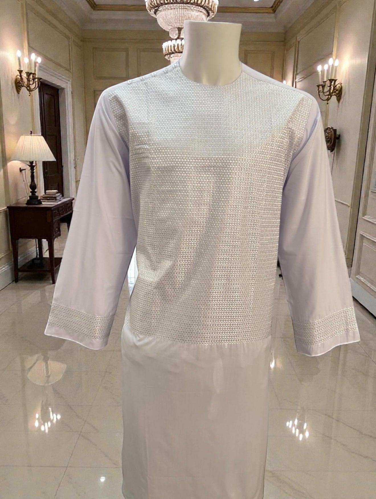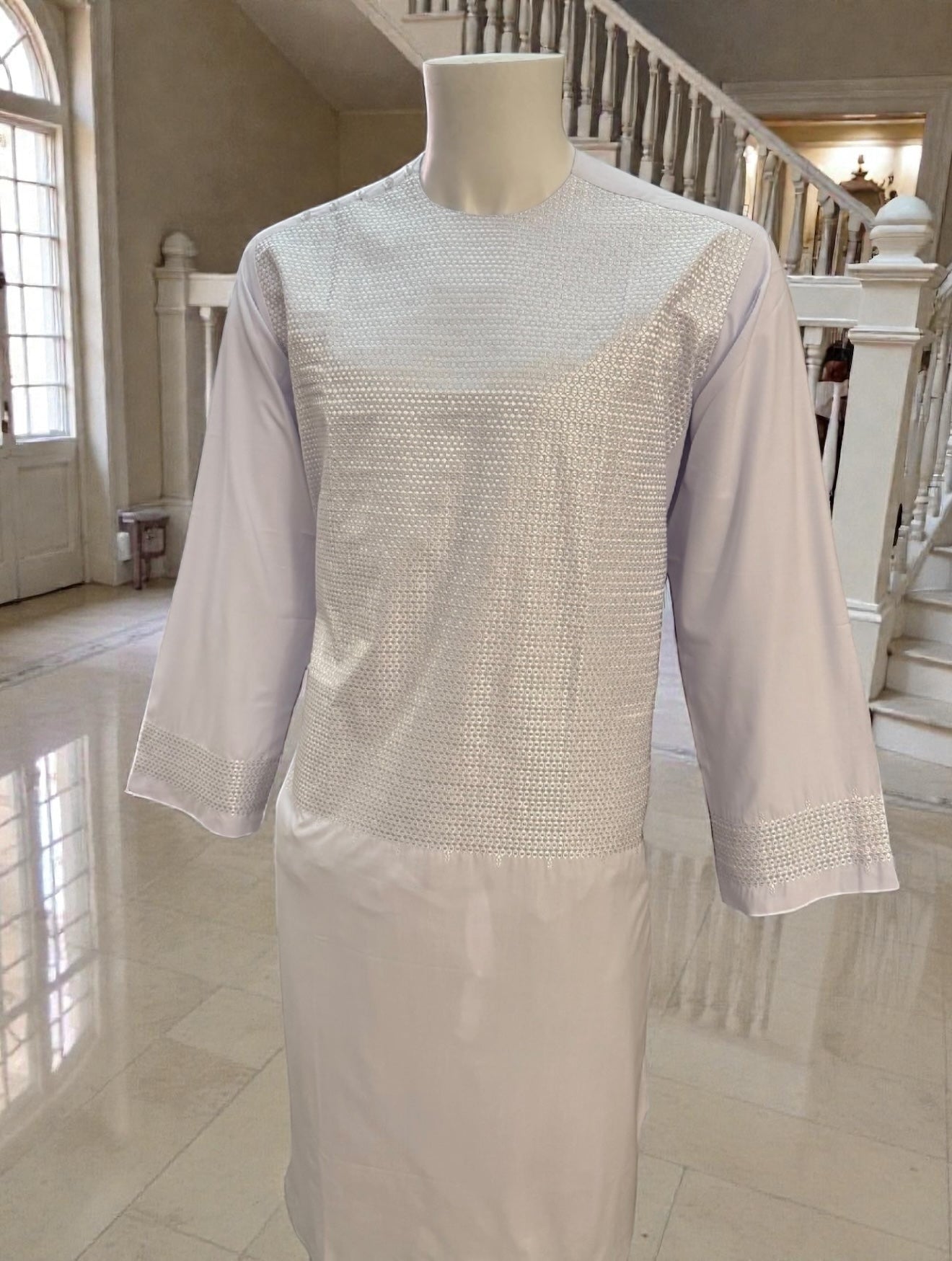 A lightweight, breathable, and elegant option for anyone looking to showcase timeless tradition with a fresh, clean white design.