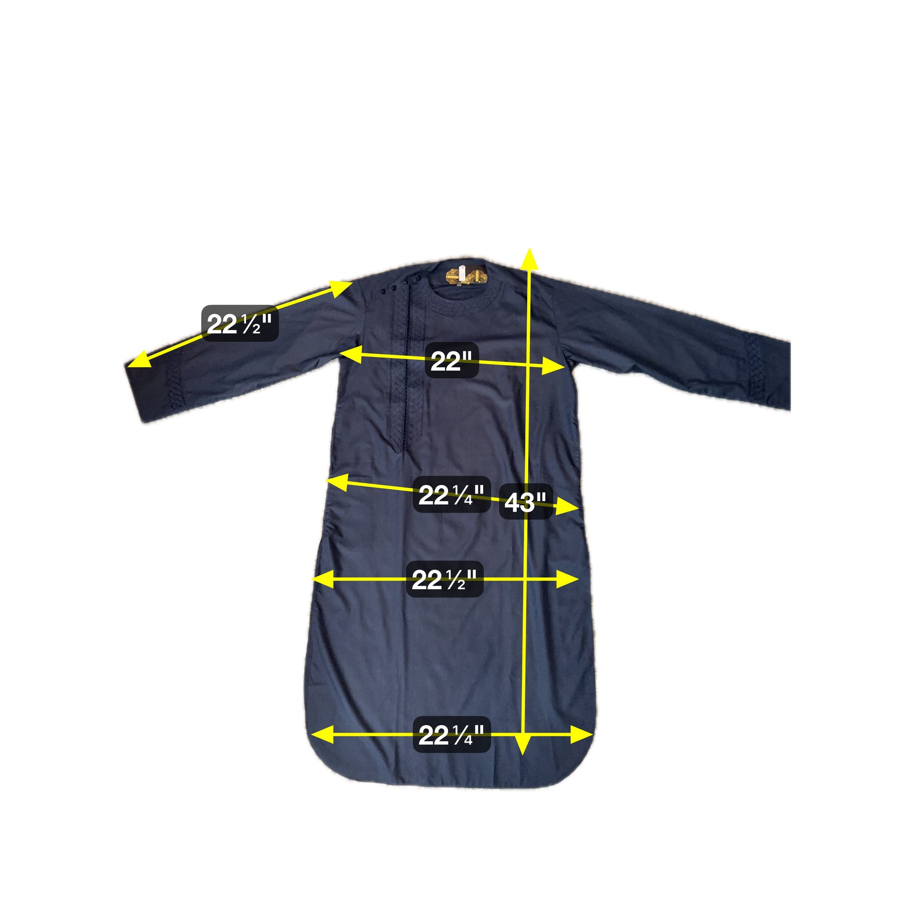 Waist Width: 22.25 in. Hip Width: 22.5 in. Sleeve Length: 22.5 in. Body Length: 43.0 in. Bottom Hem Width: 22.25 in. Sleeve Opening Width: 6.0 in. Shoulders: 18.75 in. Pants/tumban: 39.0 in.