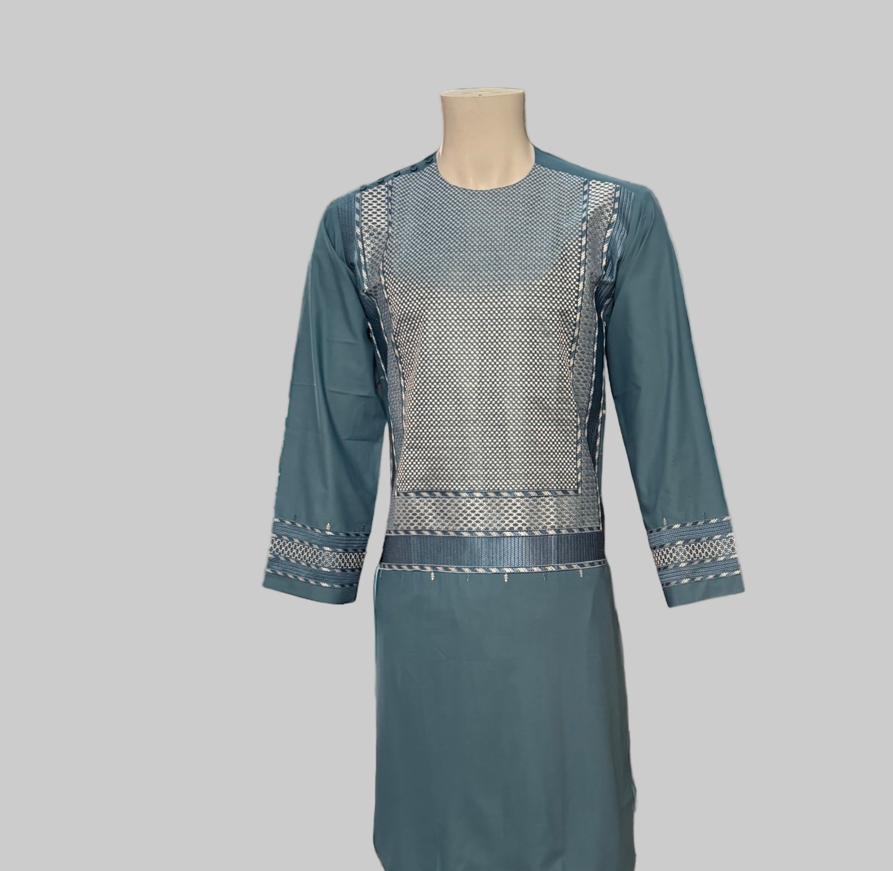 Experience authentic Afghan craftsmanship with this turquoise blue men’s kameez featuring detailed white khamakdozi embroidery. Designed using a premium, soft-touch fabric, this traditional Afghan outfit offers comfort, breathability, and a clean cultural look suitable for weddings, Eid, gatherings, and everyday wear.