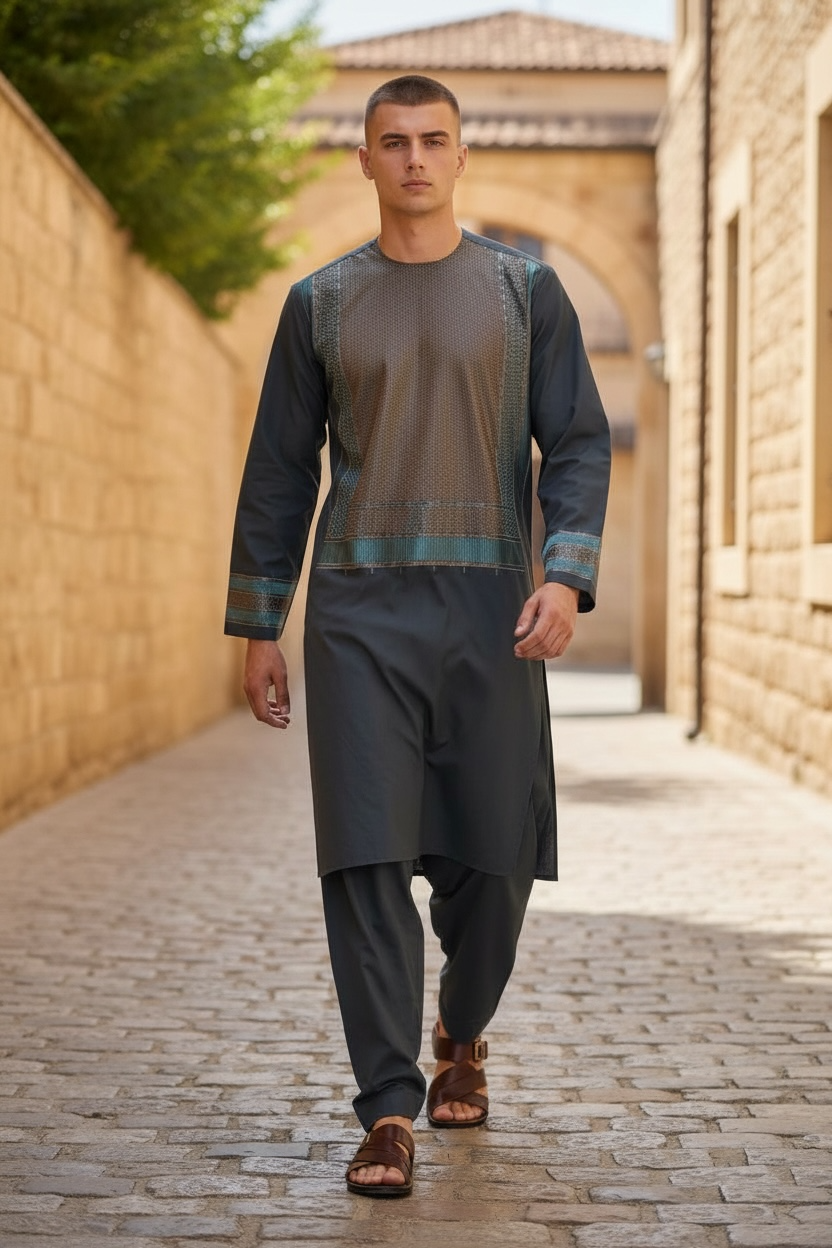Men’s Afghan Parahan Tunban – Charcoal Grey kameese shelwar Large