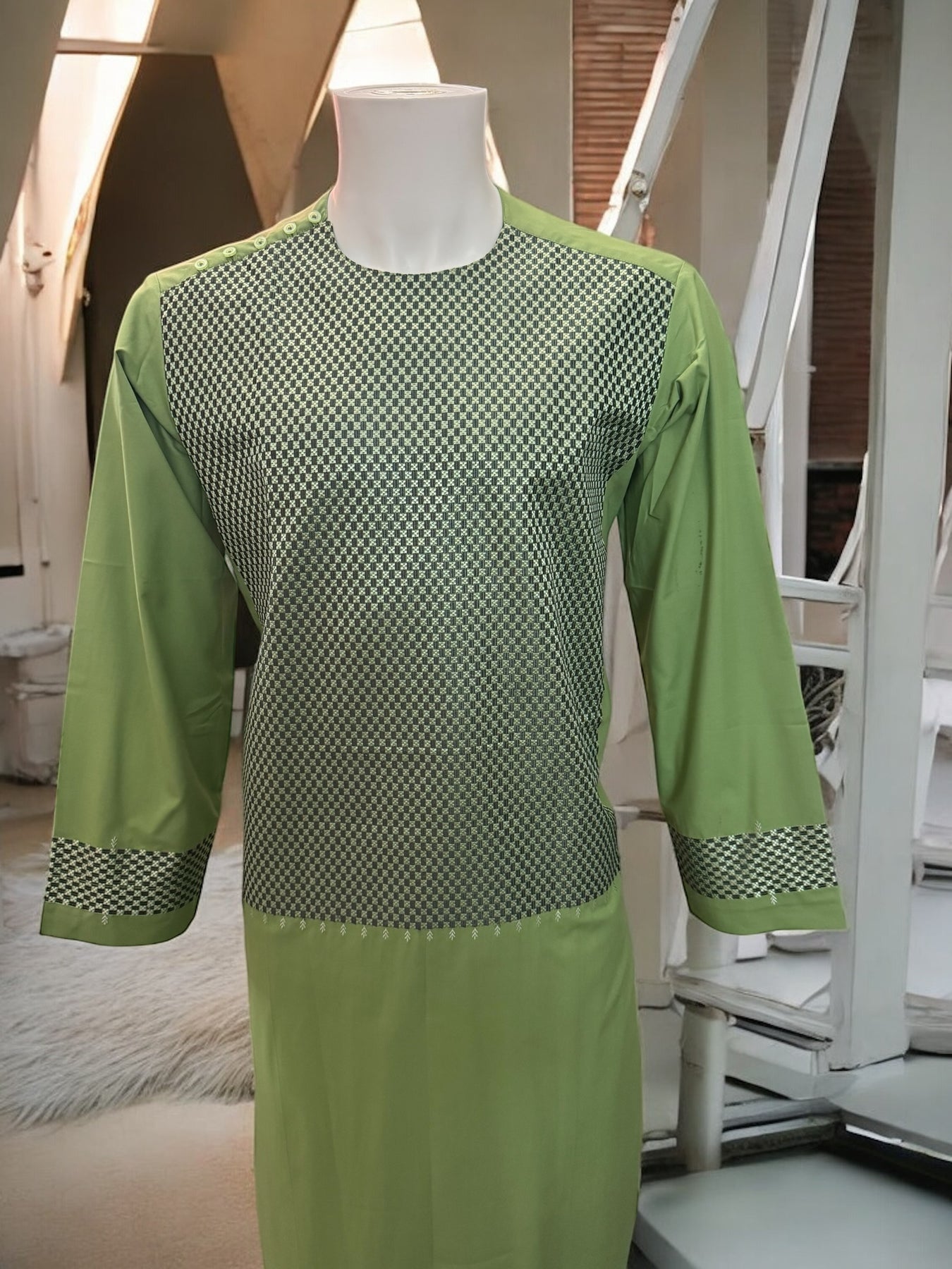 Chest Width: 22.5 in.Shoulder Width: 18.0 in.Body Length: 43.5 in.Sleeve Length: 22.5 in.Bottom Hem Width: 24.5 in.Sleeve Opening Width: 6.0 in.Pants/tumban: 38.0 in.