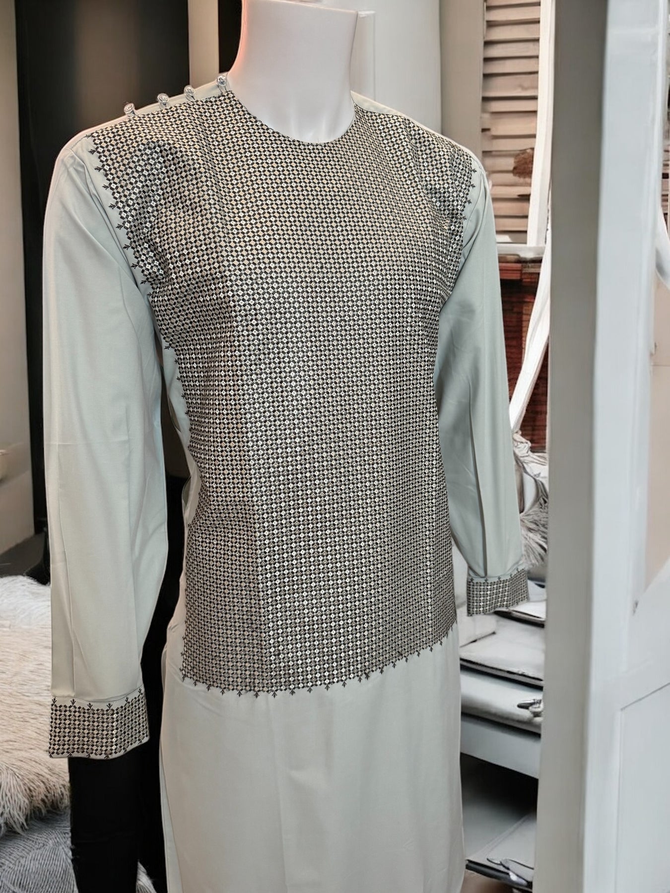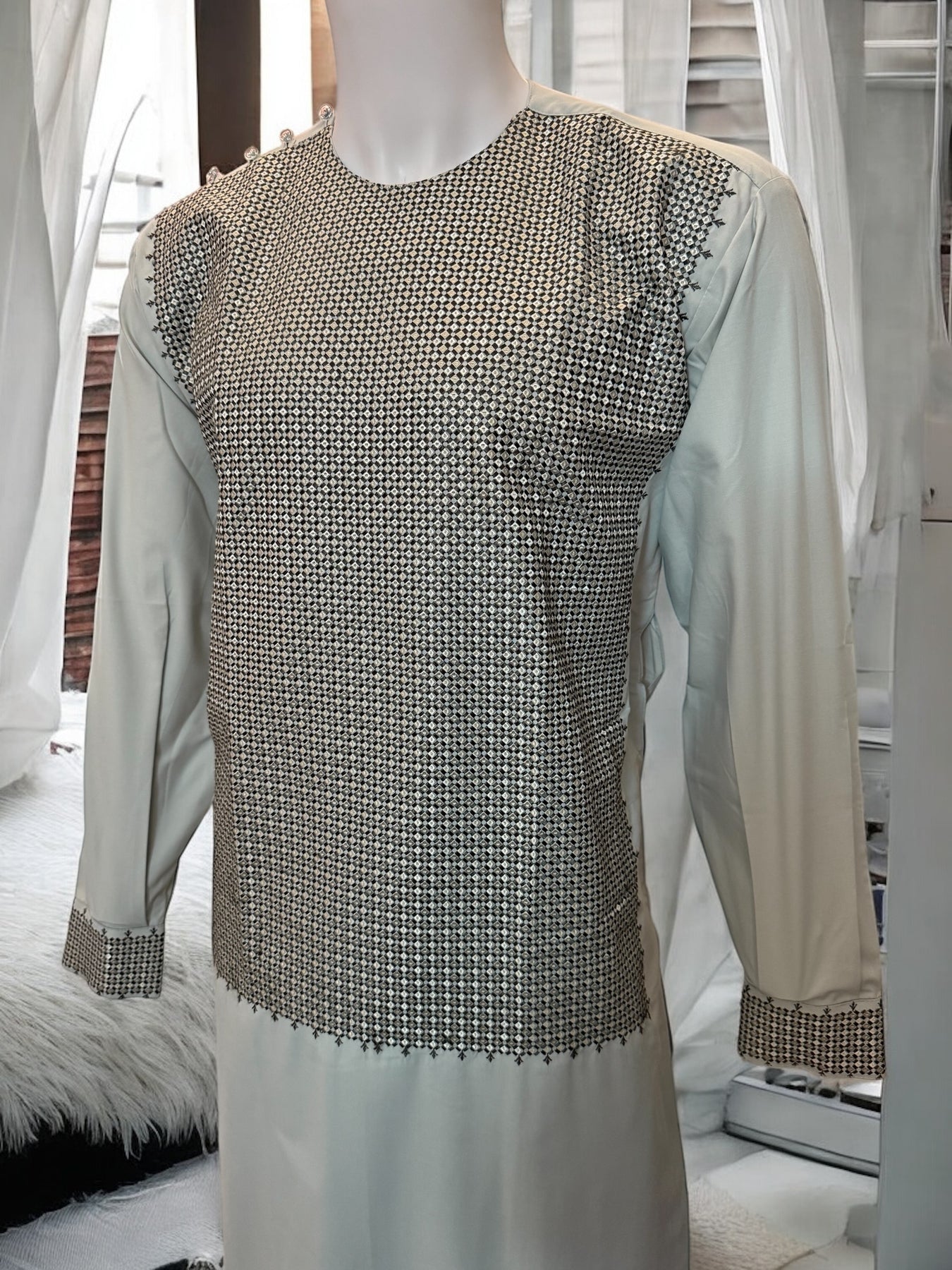 Chest Width: 22.5 in.Shoulder Width: 19.5 in.Body Length: 44.0 in.Sleeve Length: 24.0 in.Sleeve Opening Width: 4.25 in.Pants/tumban: 38.0 in.