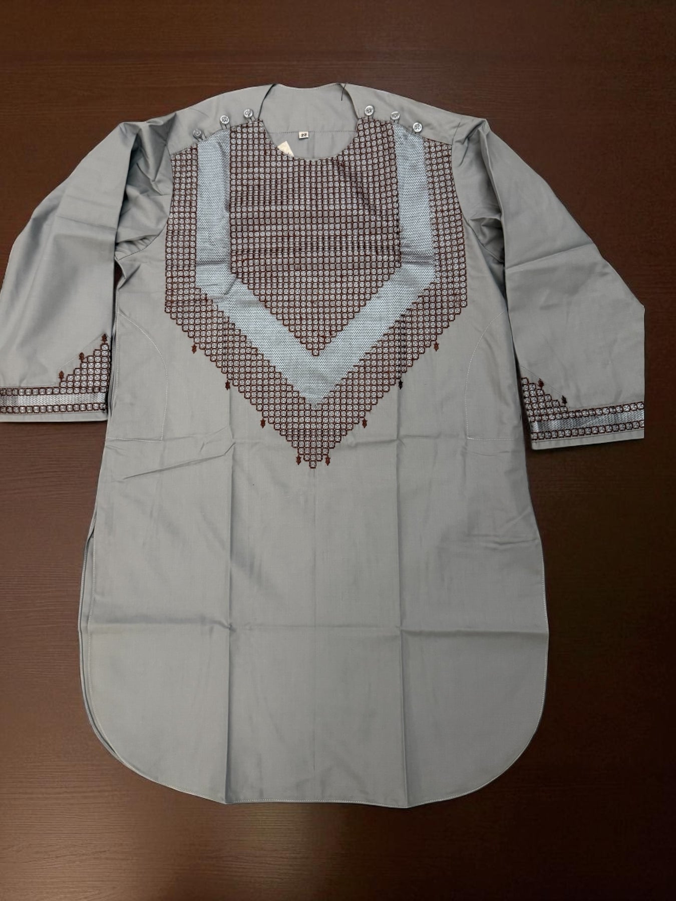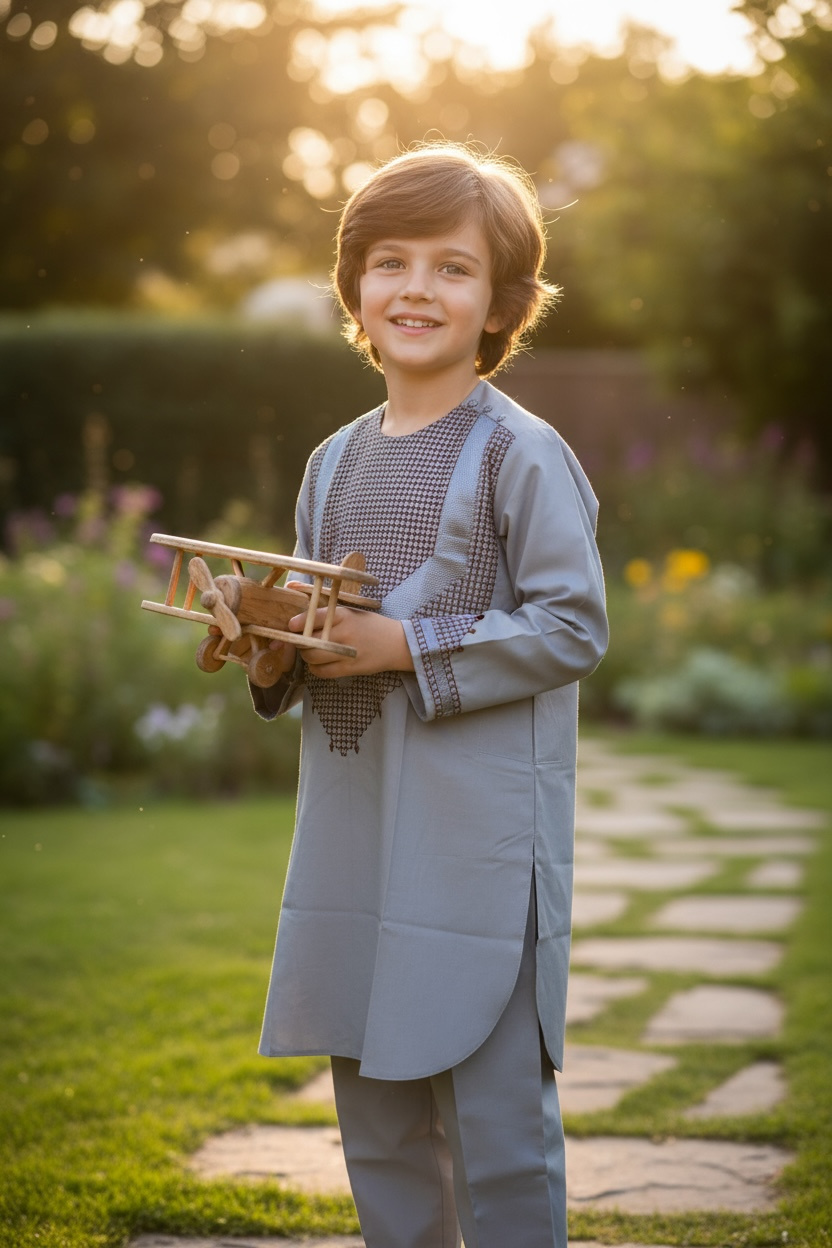 Elevate your little one’s ethnic wardrobe with our Boys Traditional Gray Parahan Tumban 7-8 Years, a perfect blend of comfort, craftsmanship, and cultural heritage. Designed for boys aged 7 to 8 years, this traditional outfit embodies the elegance of Afghan clothing, featuring intricate Khamak embroidery that highlights the artistry and attention to detail in every piece.