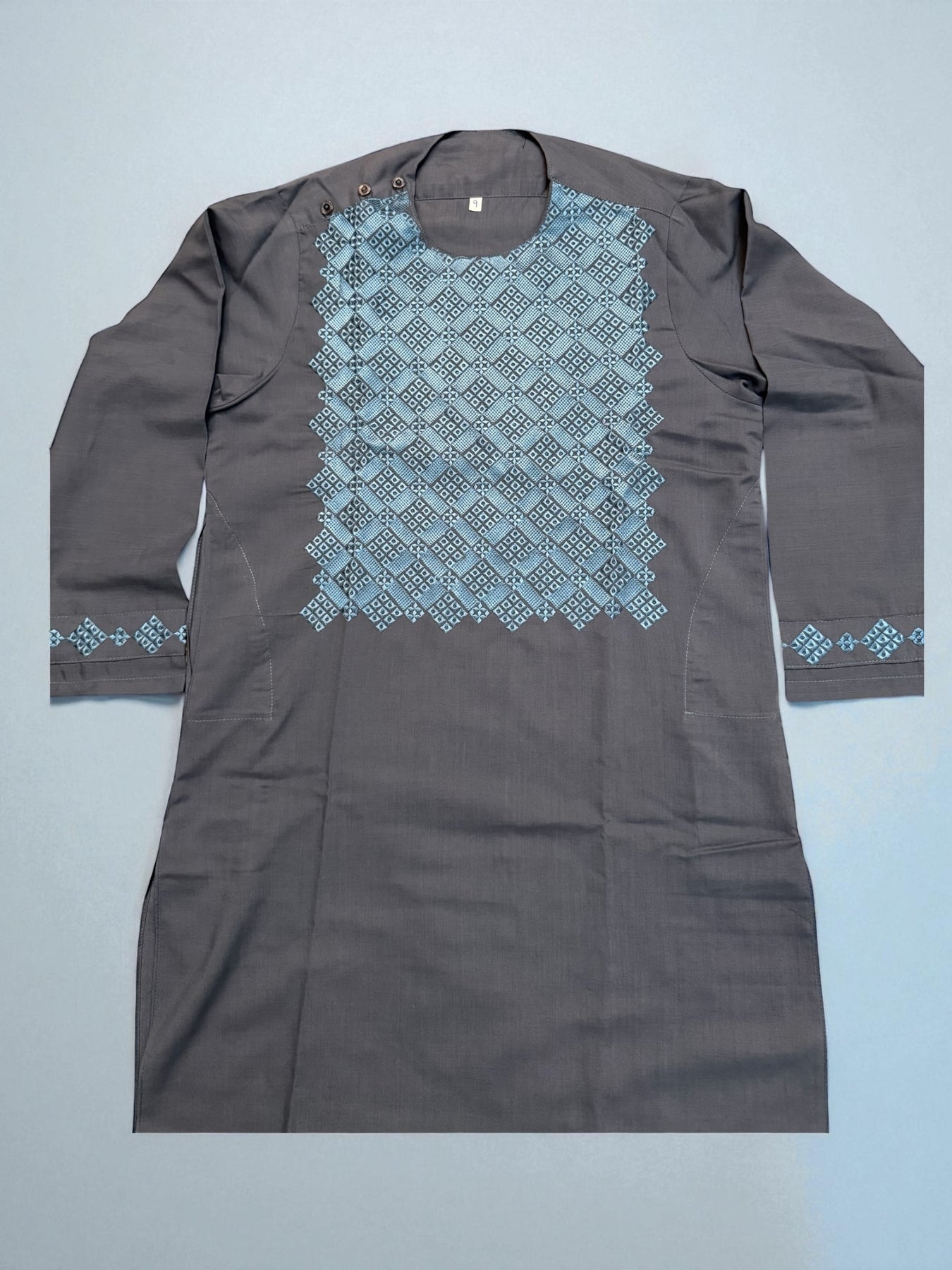 Gray Afghan Parahan Tumban for Boys 8–9 Years | Light Blue Machine Khamak Embroidery