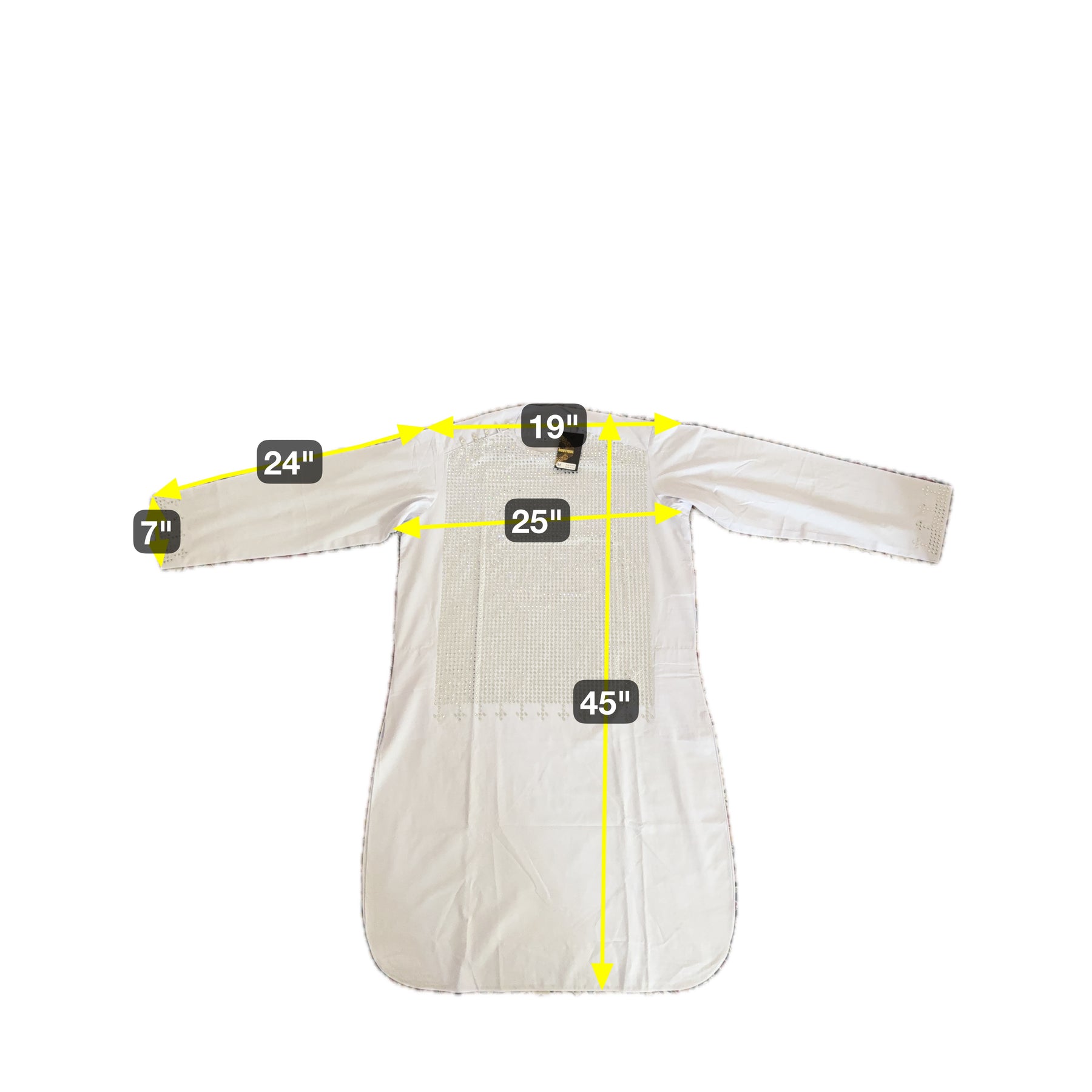 Large 3-piece Parahan Tunban set in a regular fit, featuring elegant shesha (mirror work) detailing with a refined traditional appearance. Crafted from smooth, breathable fabric, this set offers comfortable wear while maintaining a clean and structured silhouette.