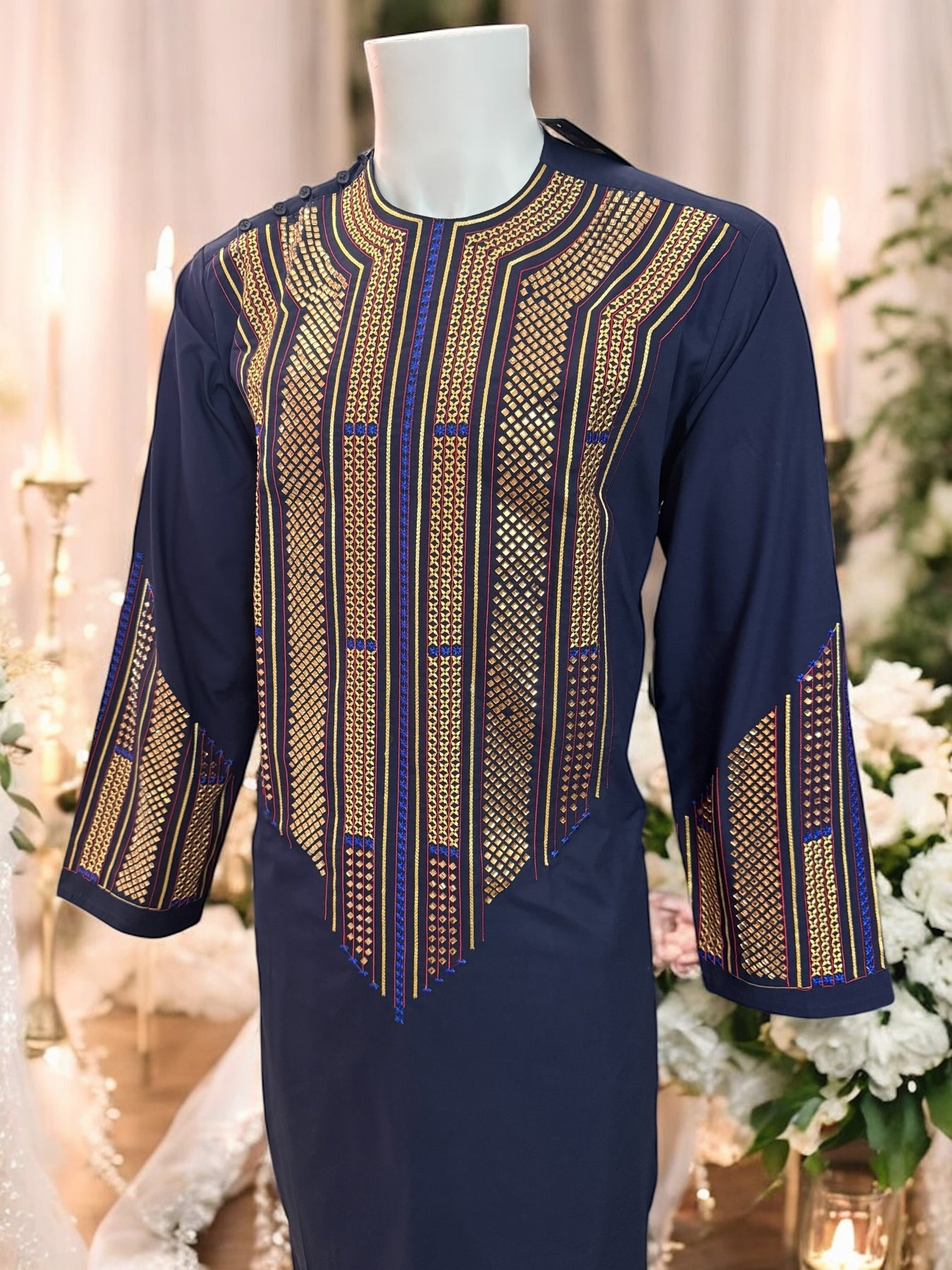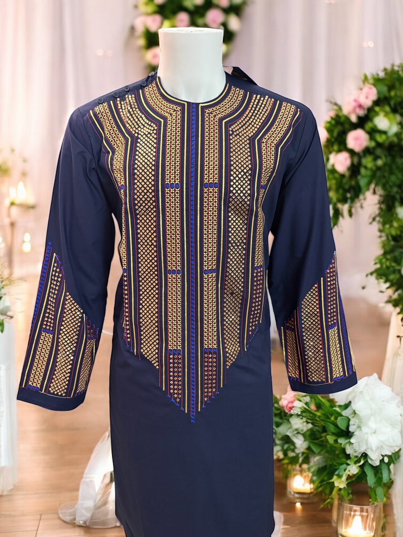 Chest Width: 23.0 in.Shoulder Width: 18.0 in.Body Length: 42.0 in.Sleeve Length: 23.5 in.Sleeve Opening Width: 6.5 in.Pants/tumban: 39.5 in.