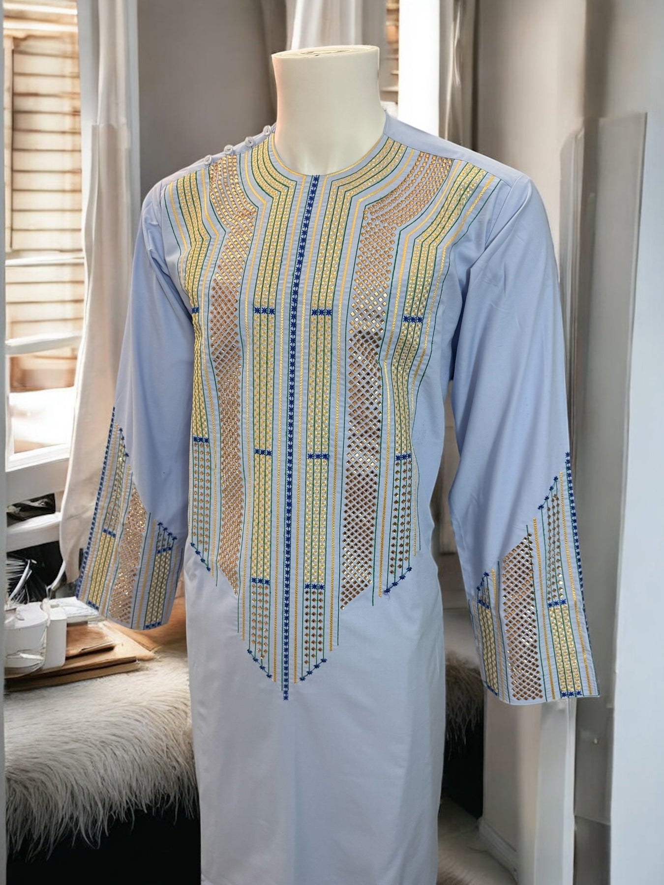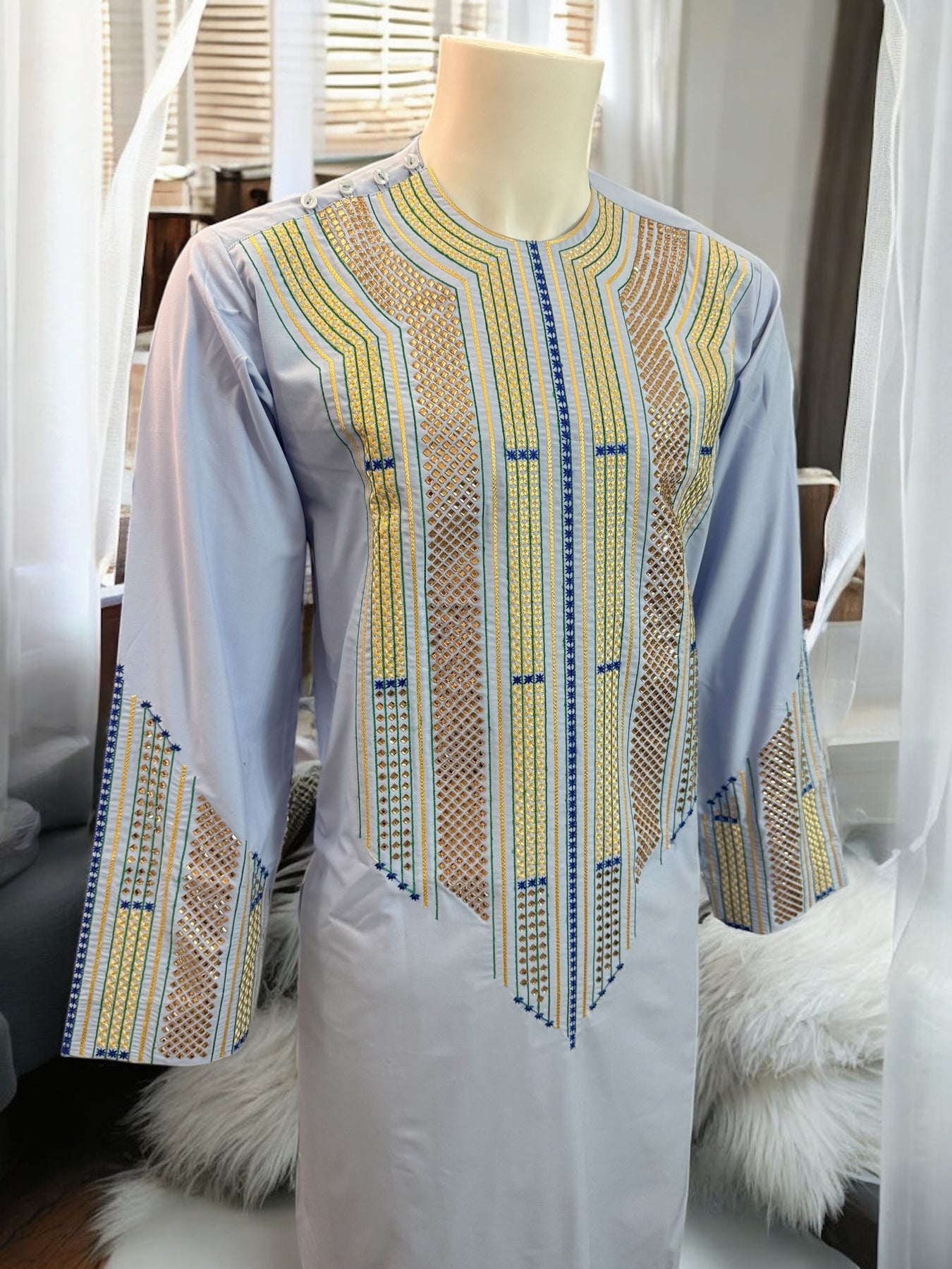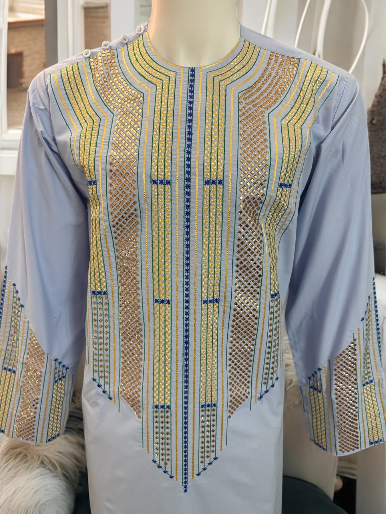 Chest Width: 23.5 in.Shoulder Width: 18.0 in.Body Length: 42.0 in.Sleeve Length: 24.0 in.Sleeve Opening Width: 6.5 in.Pants/tumban: 39.0 in.