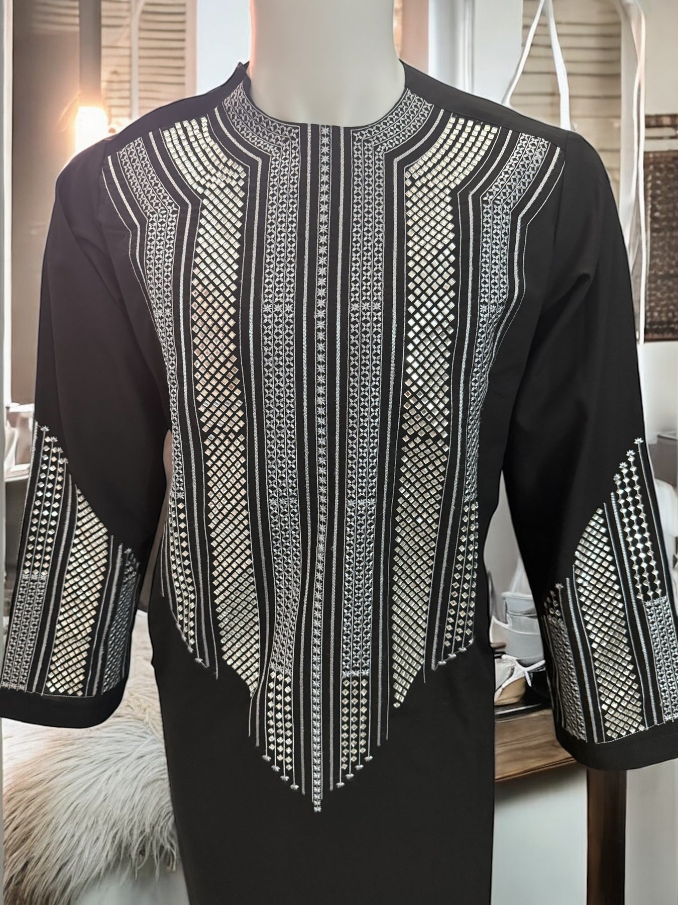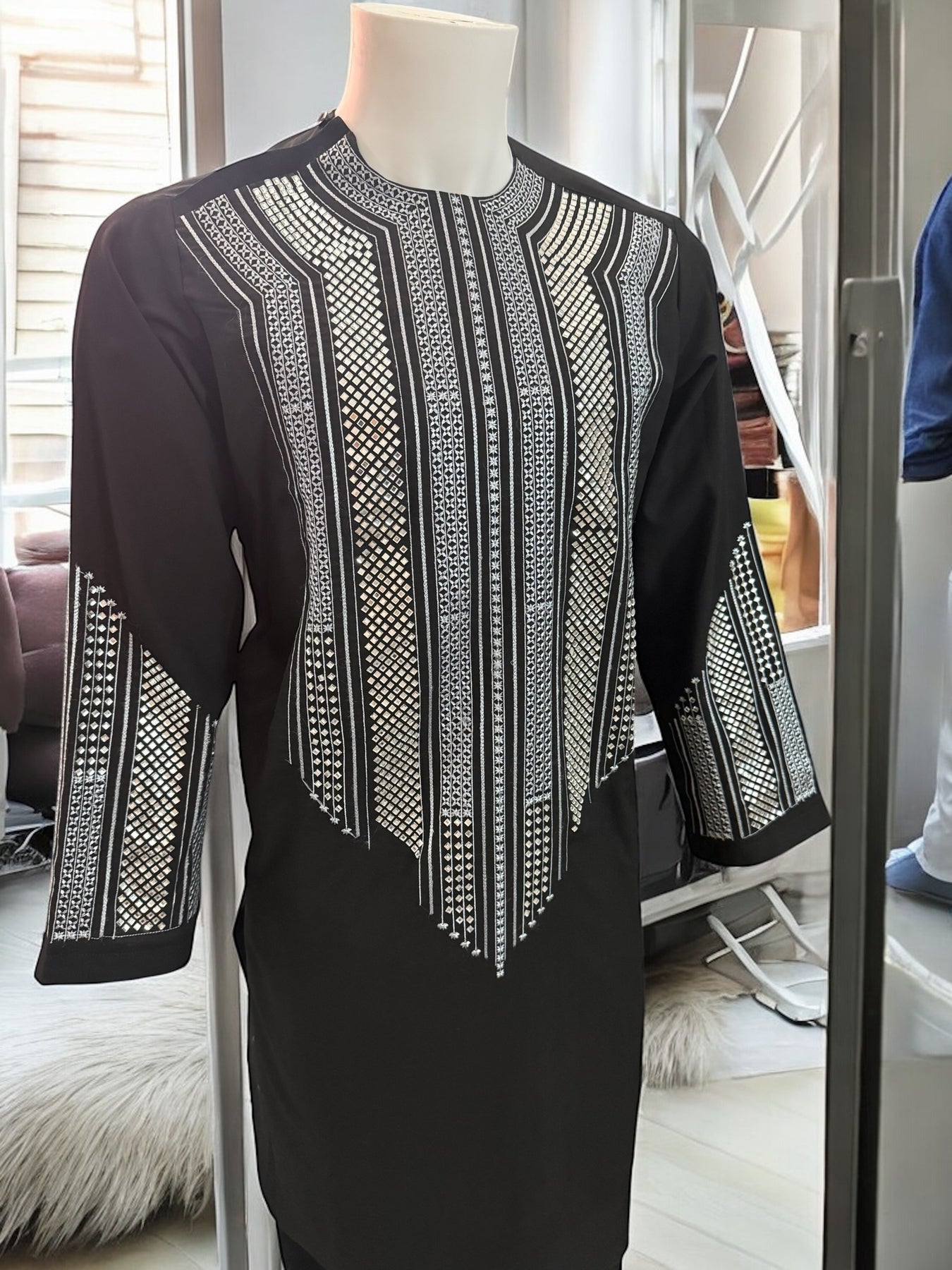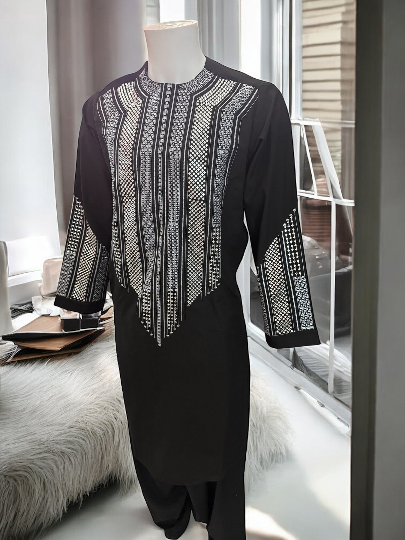 Chest Width: 25.0 in.Shoulder Width: 19.0 in.Body Length: 44.0 in.Sleeve Length: 25.0 in.Sleeve Opening Width: 6.5 in.Pants/tumban: 38.5 in.
