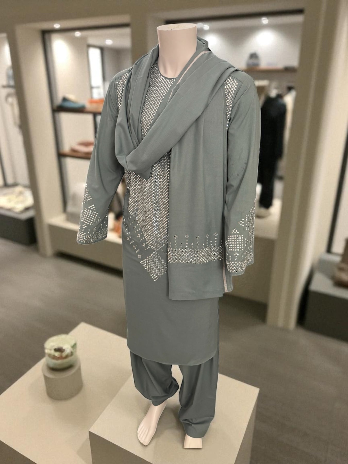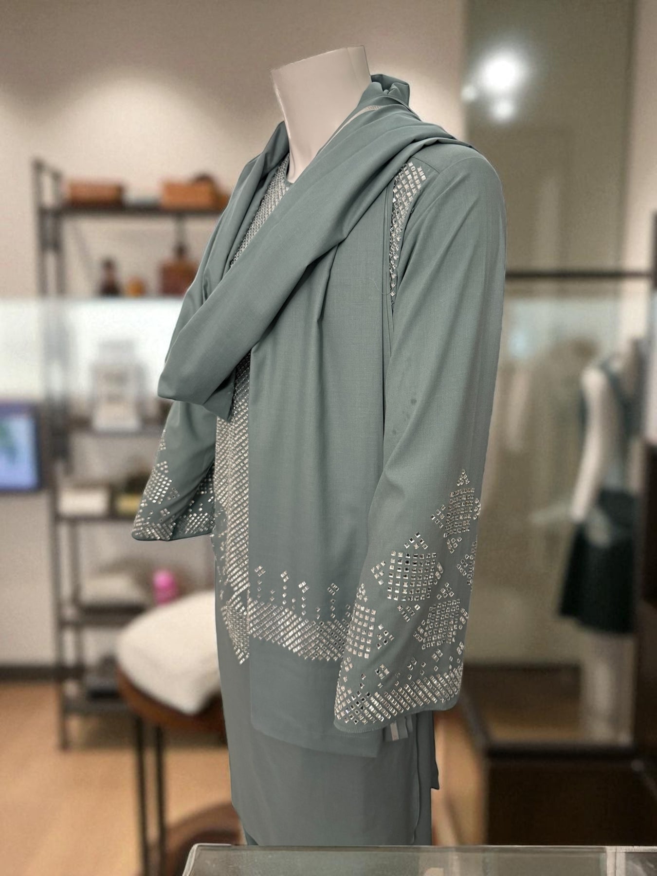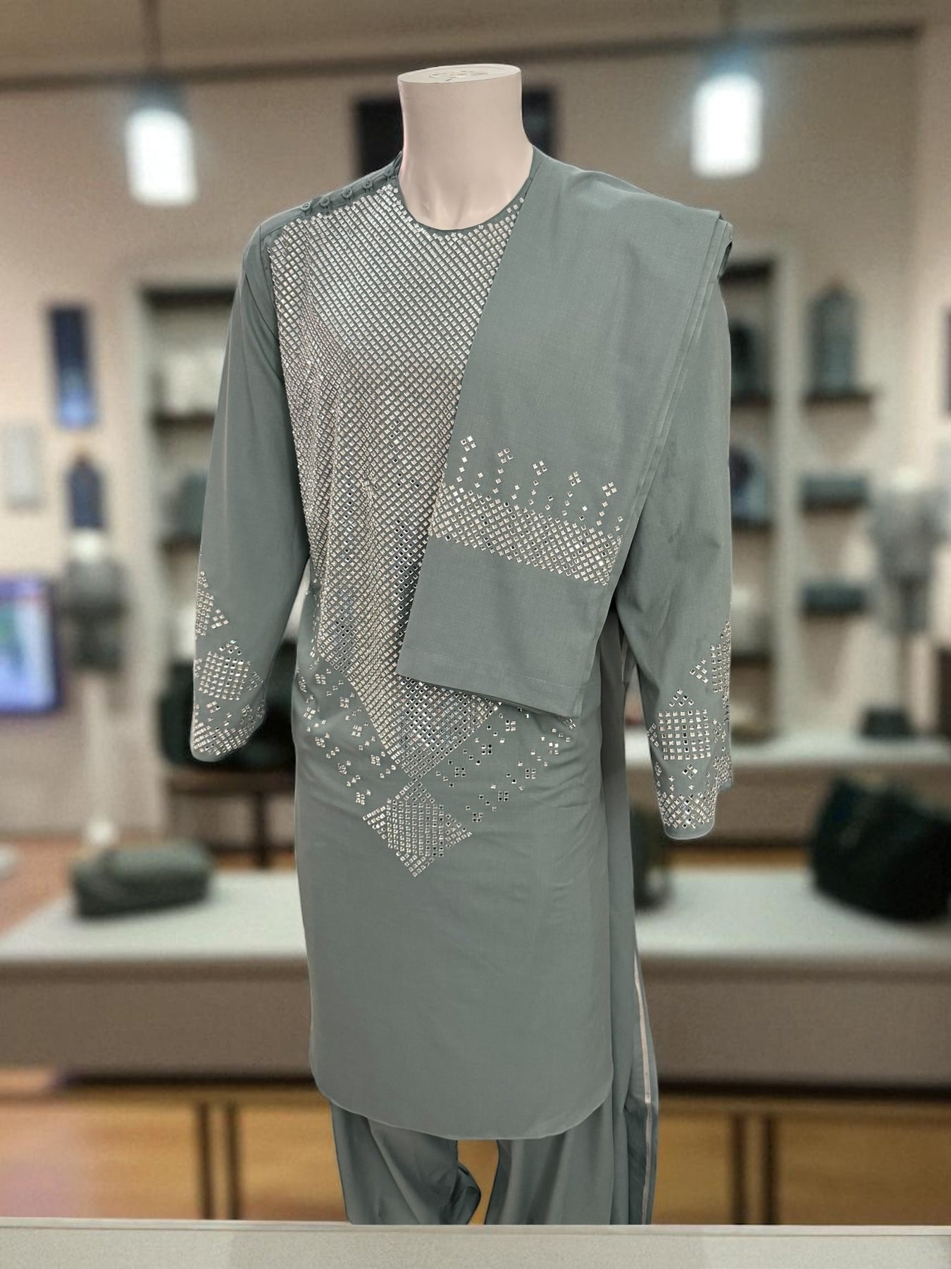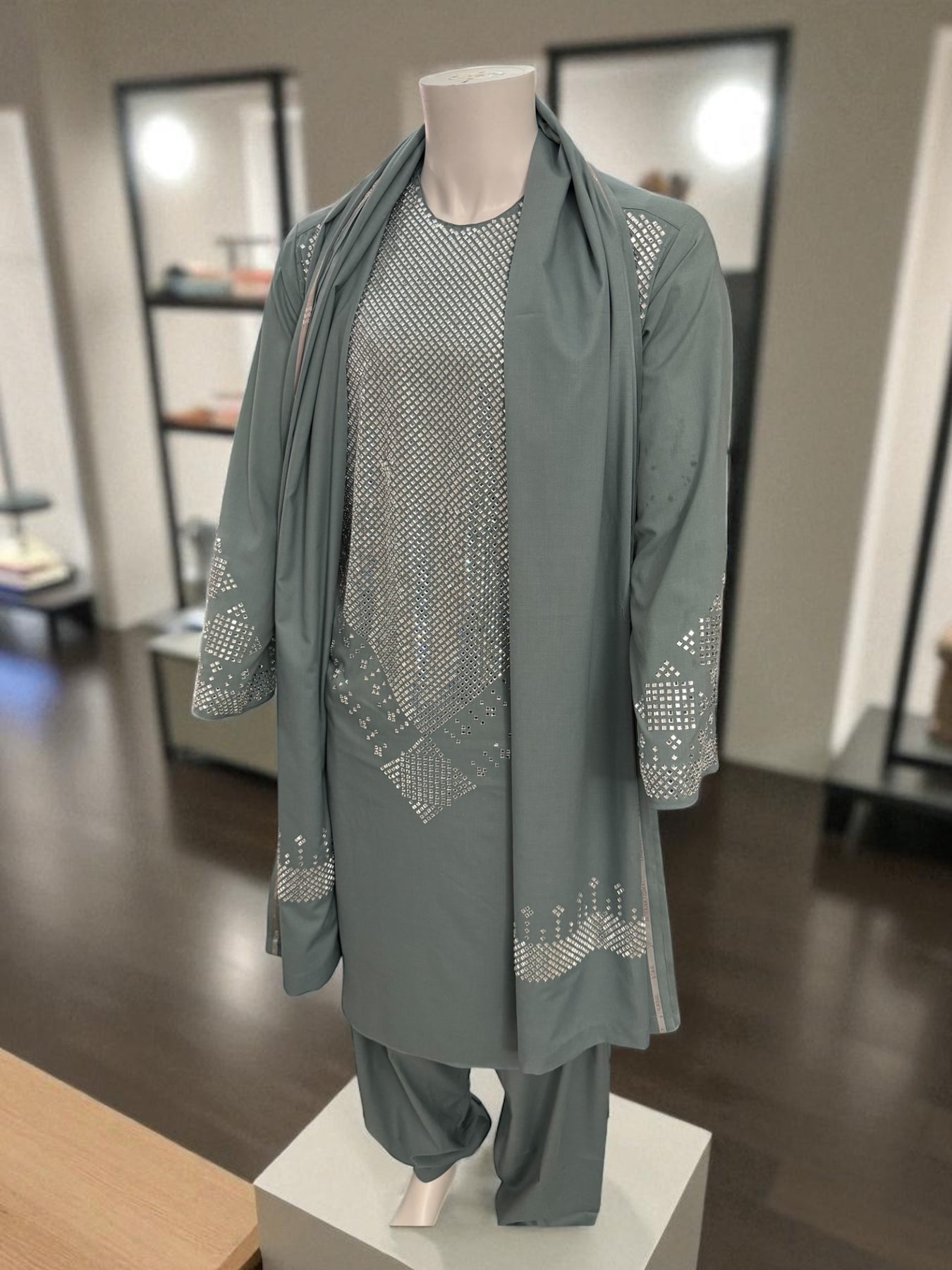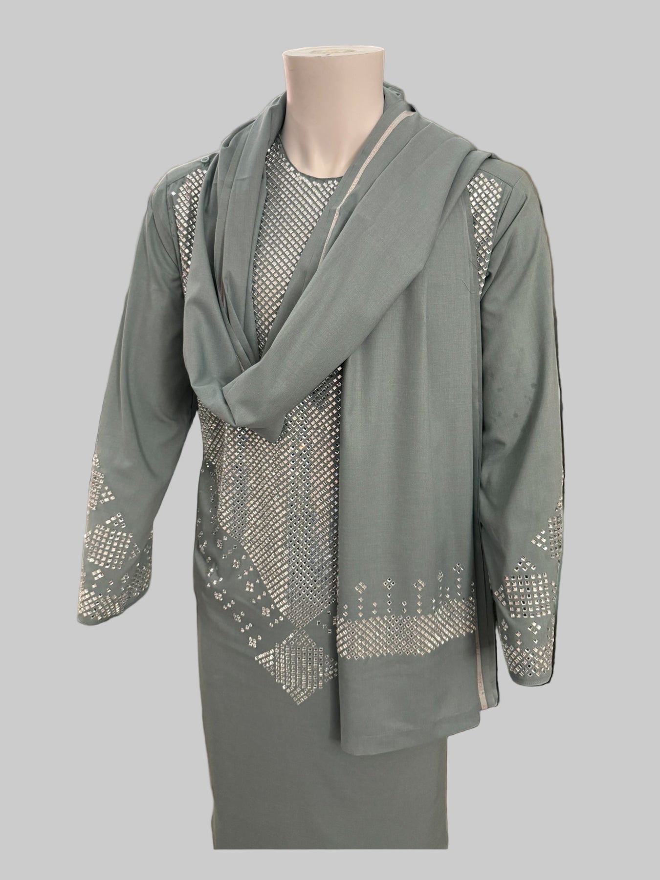 Elevate your wardrobe with this elegant Sage Green Kameez Shalwar, a perfect blend of tradition and contemporary style. This exquisite 3-piece set from Luqmaan Boutique is designed for those who appreciate subtle sophistication and comfort. The soft sage green color adds a refreshing touch to your ensemble, making it ideal for both festive occasions and casual gatherings.