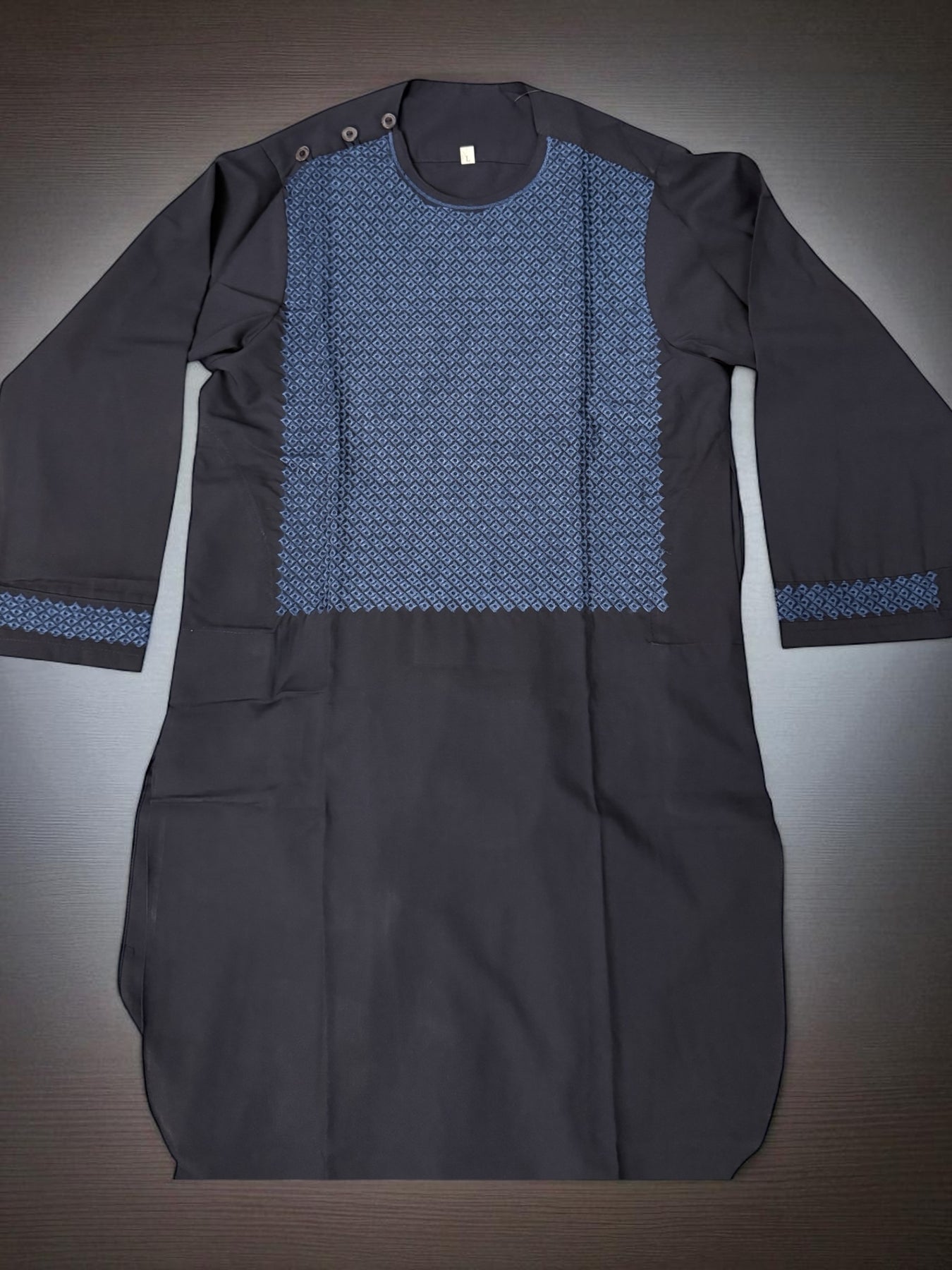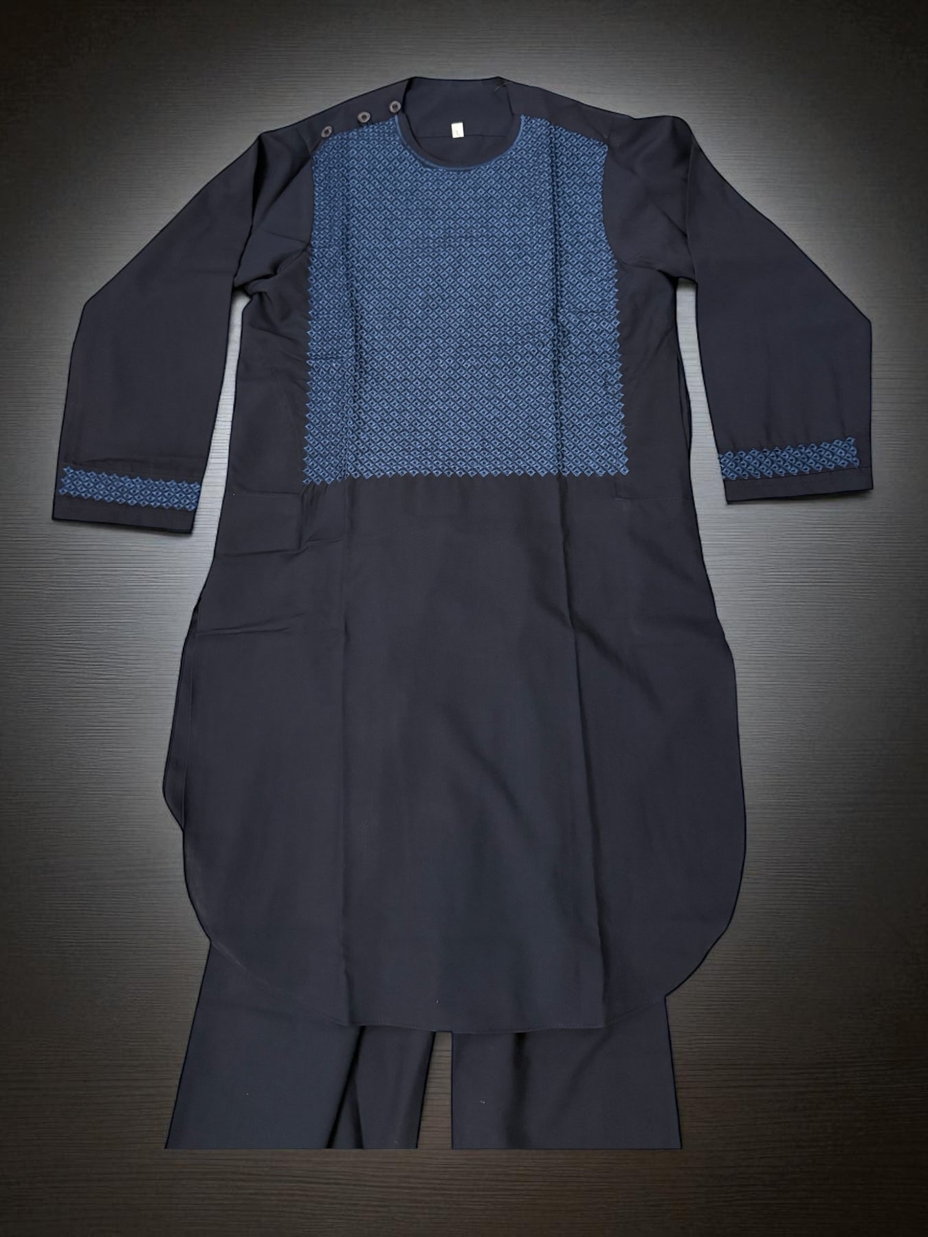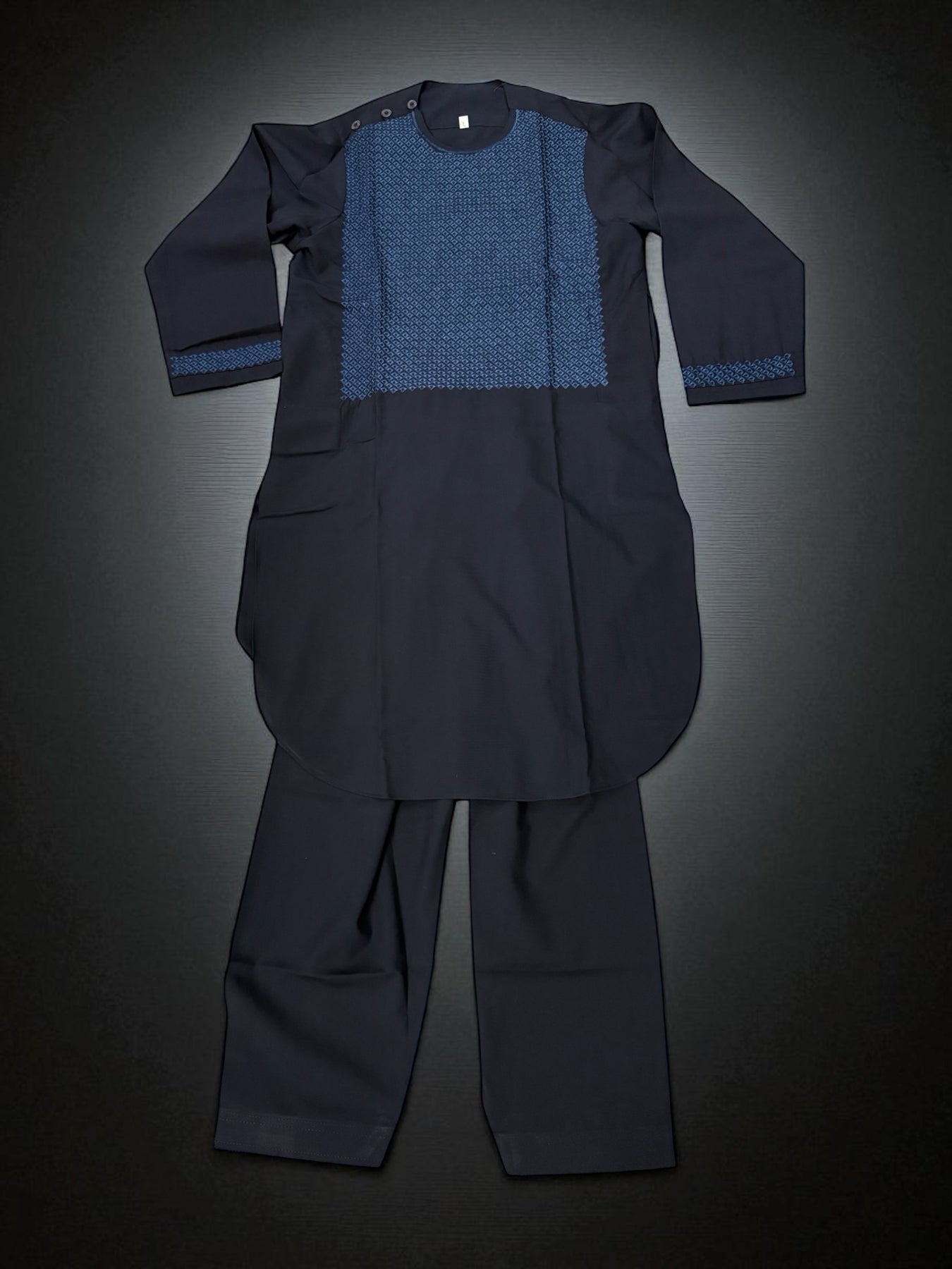 The 6-Year-Old Boys Navy Parahan Tumban from Luqmaan Boutique is a perfect blend of tradition, comfort, and style, designed especially for young boys who love to look their best. Crafted with high-quality cotton and polyester, this parahan tumban offers a soft and breathable feel, ensuring your child stays comfortable throughout the day, whether at a family gathering, religious celebration, or casual outing.