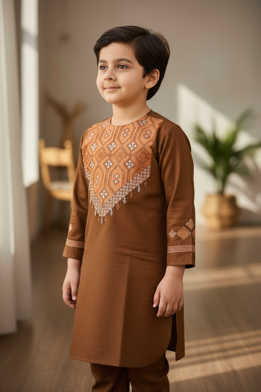 7-Year-Old Boys Parahan Tumban with Khamak Embroidery