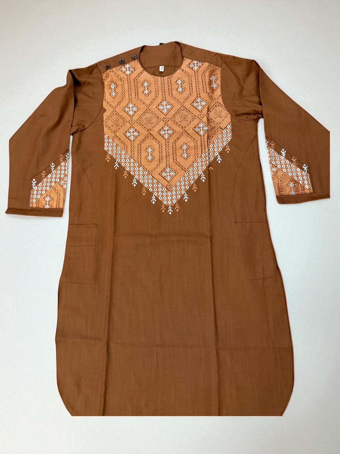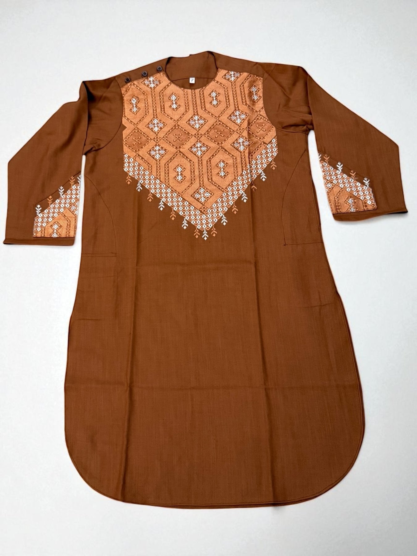 This 7-year-old boys parahan tumban from Luqmaan Boutique is a beautifully crafted traditional outfit designed to combine cultural elegance with everyday comfort. Thoughtfully tailored for young boys, this set reflects timeless heritage while ensuring ease of movement, making it ideal for special occasions, cultural events, festive celebrations, and family gatherings.