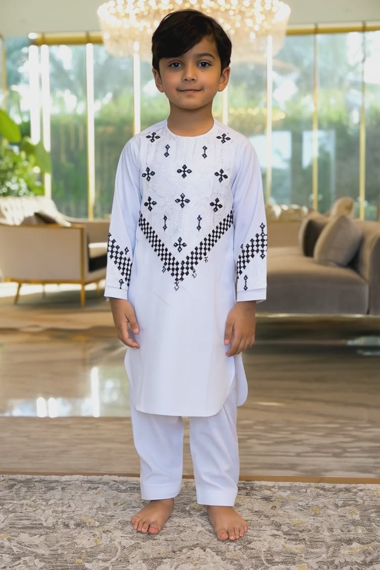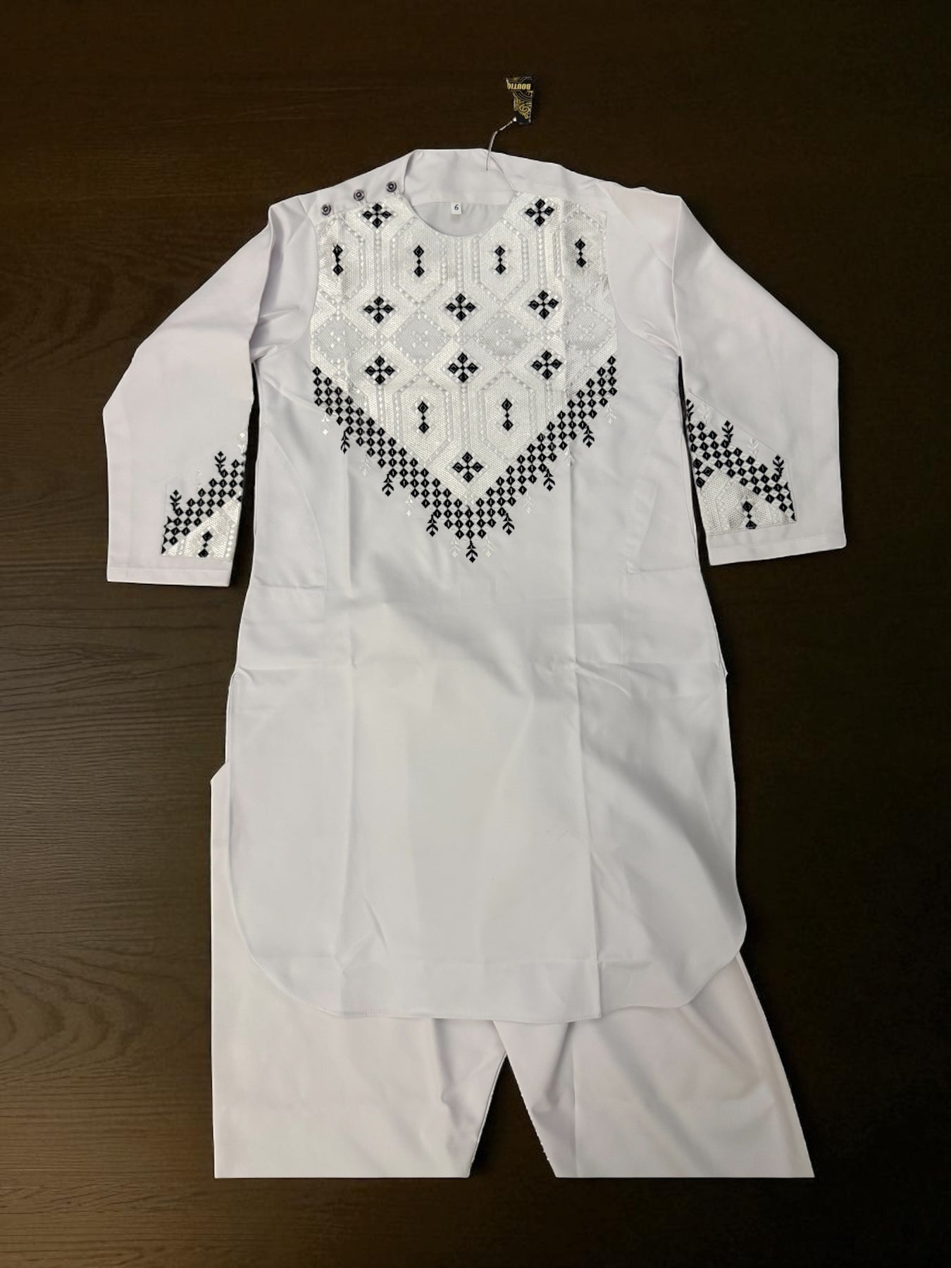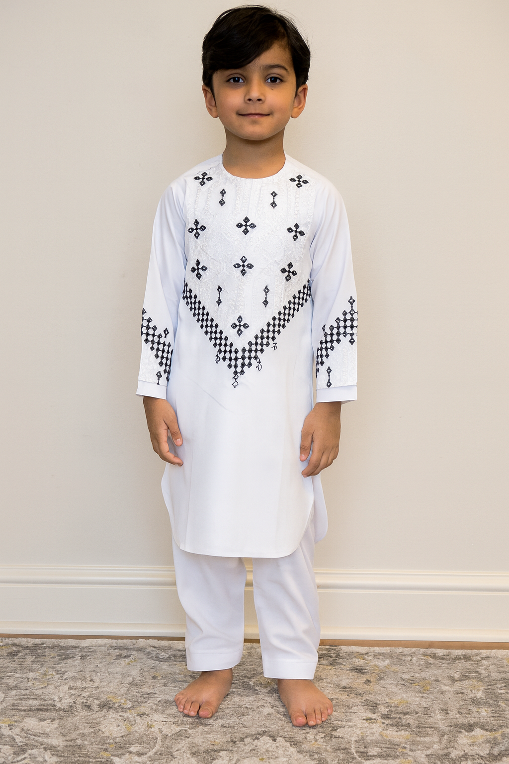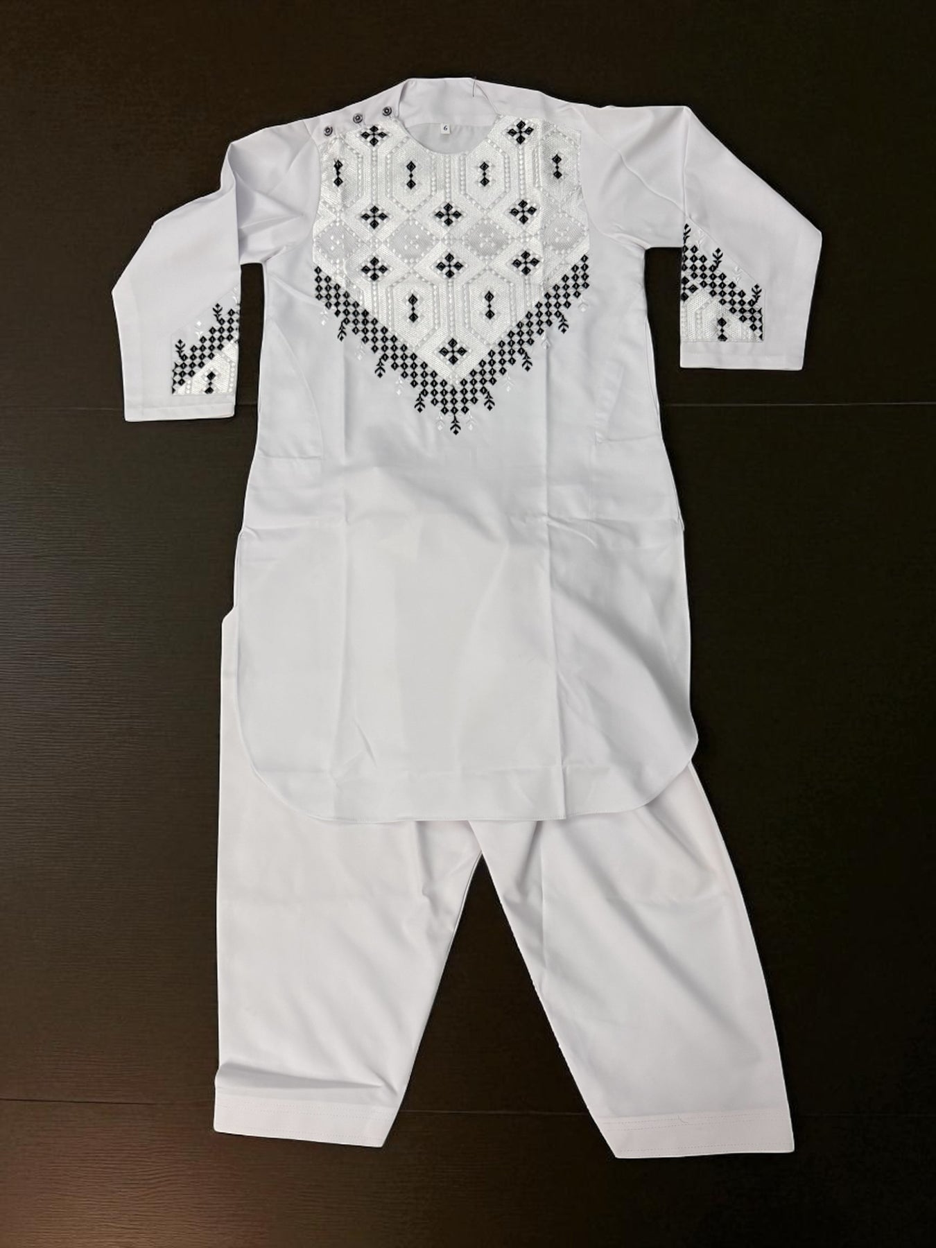 7-Year-Old Boys White Parahan Tumban with Embroidery