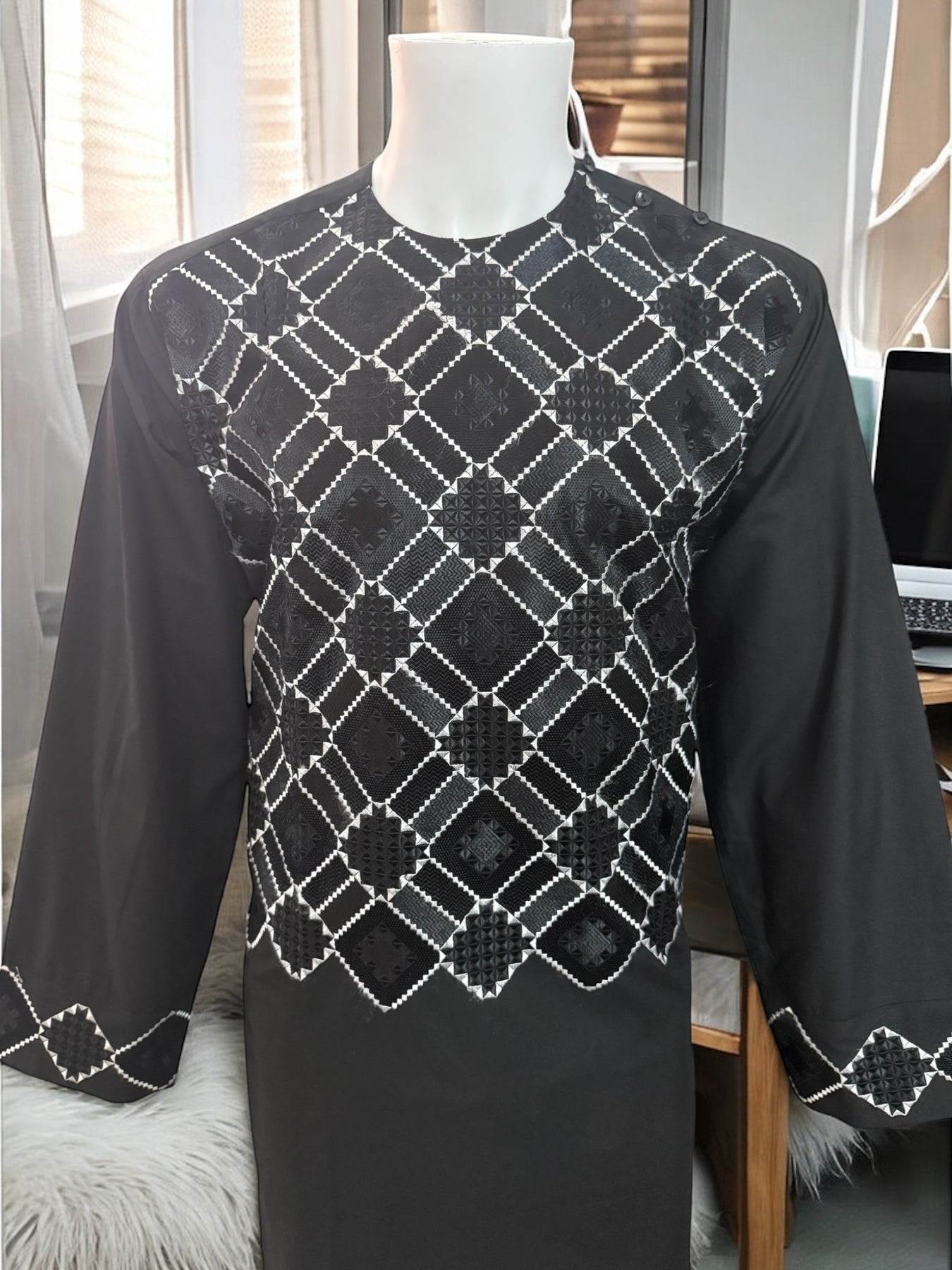 Chest Width: 22.0 in.Shoulder Width: 18.0 in.Body Length: 43.0 in.Sleeve Length: 24.0 in.Sleeve Opening Width: 6.5 in.Pants/tumban: 38.0 in.