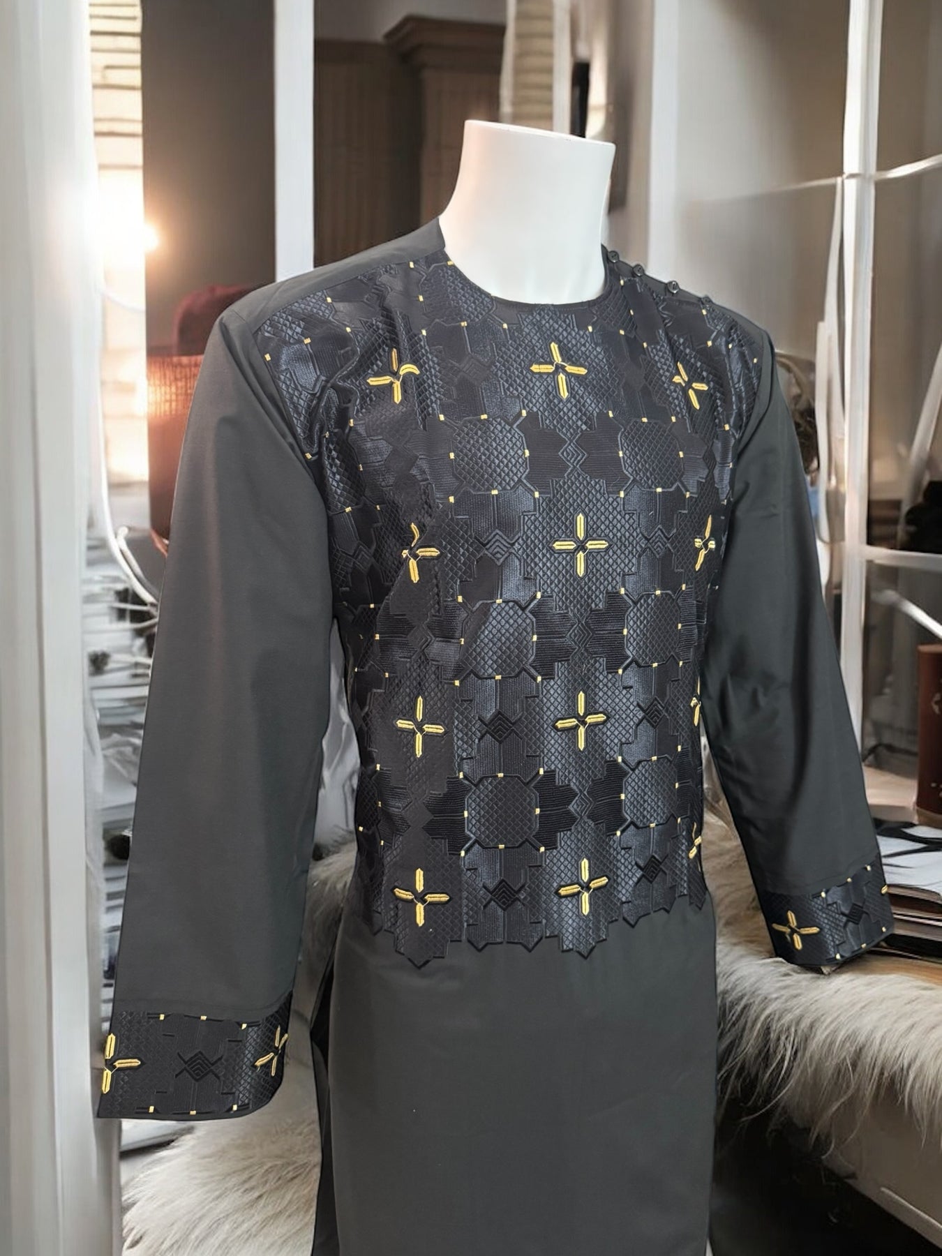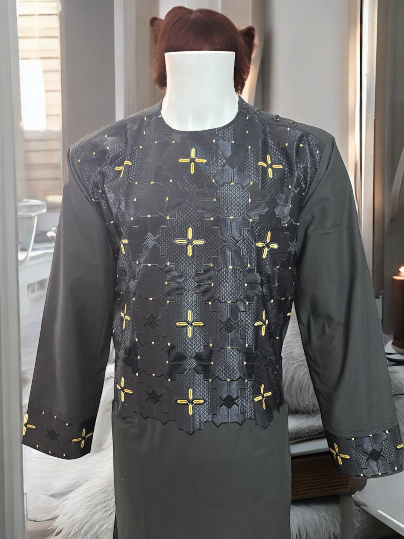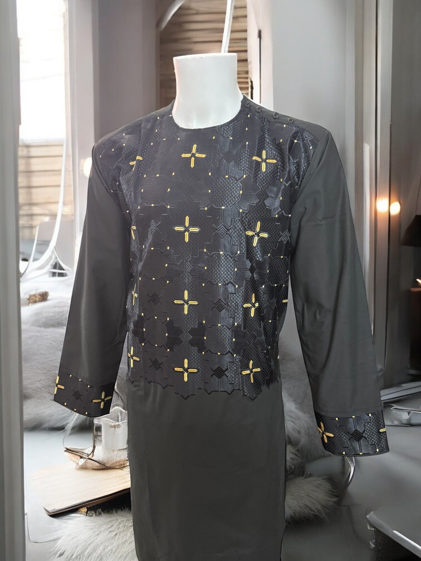 Chest Width: 22.25 in.Shoulder Width: 19.0 in.Body Length: 42.0 in.Sleeve Length: 23.75 in.Sleeve Opening Width: 6.25 in.Pants/tumban: 38.5 in.