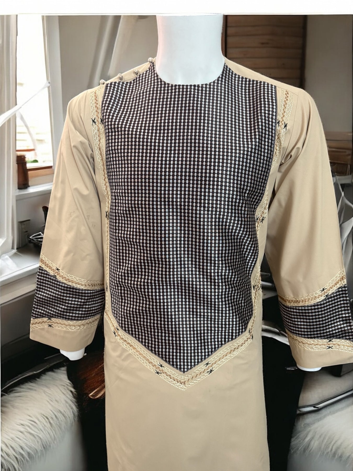 Afghan Clothes for Men, Sengee fabric with border#2266 Small