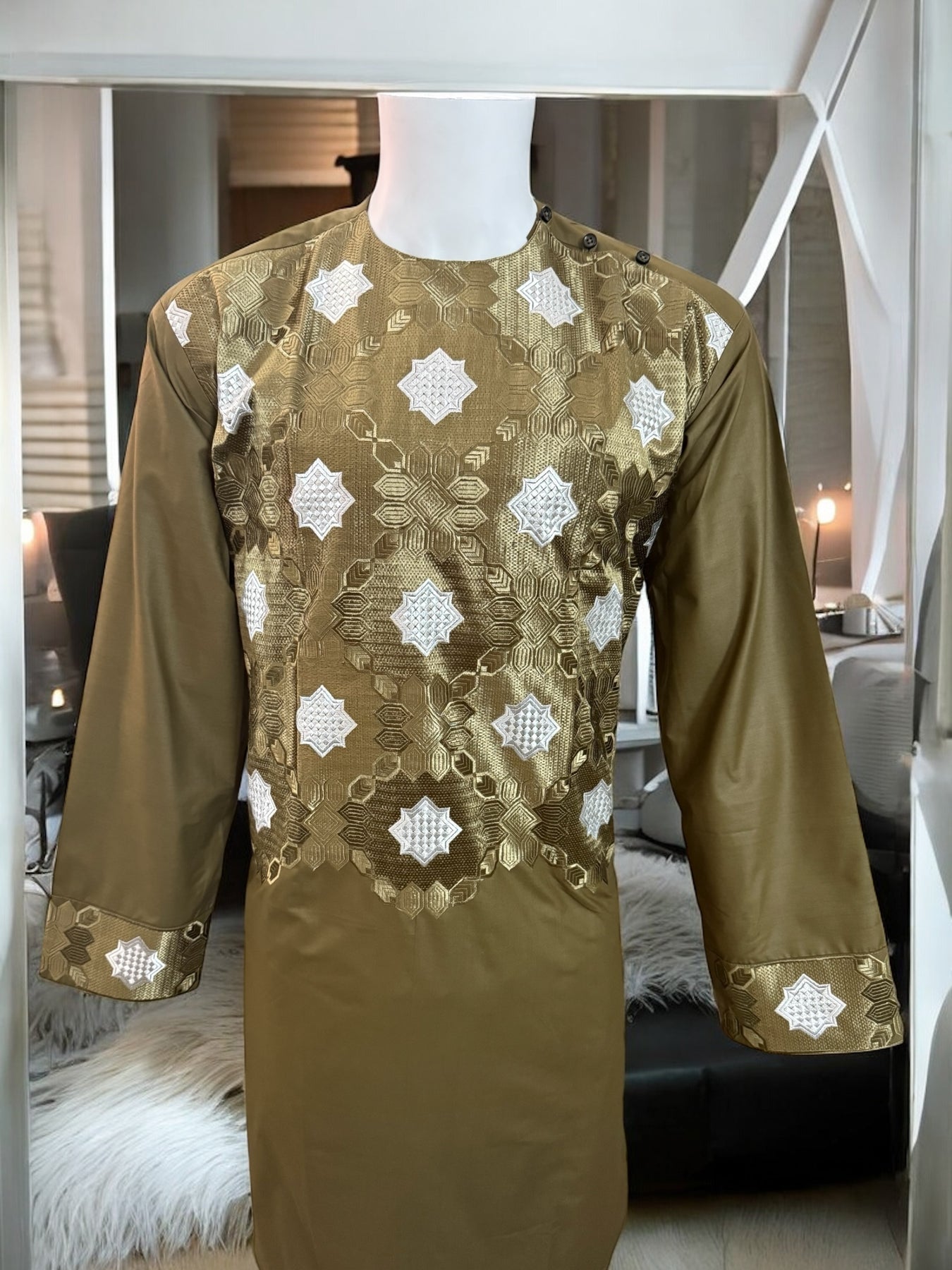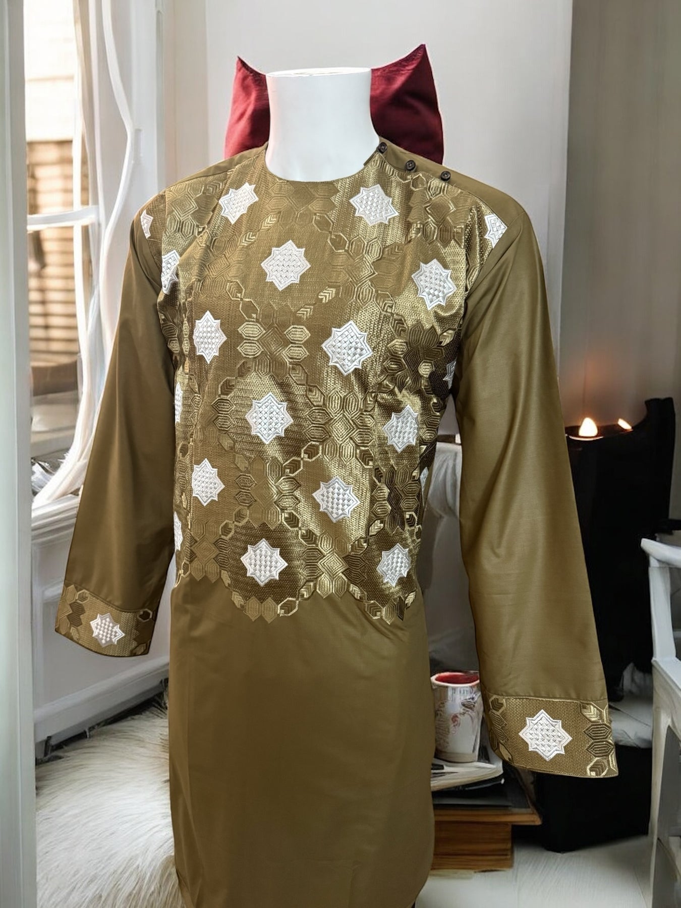 Chest Width: 22.75 in.Shoulder Width: 20.0 in.Body Length: 43.0 in.Sleeve Length: 24.25 in.Sleeve Opening Width: 6.25 in.Pants/tumban: 38.0 in.