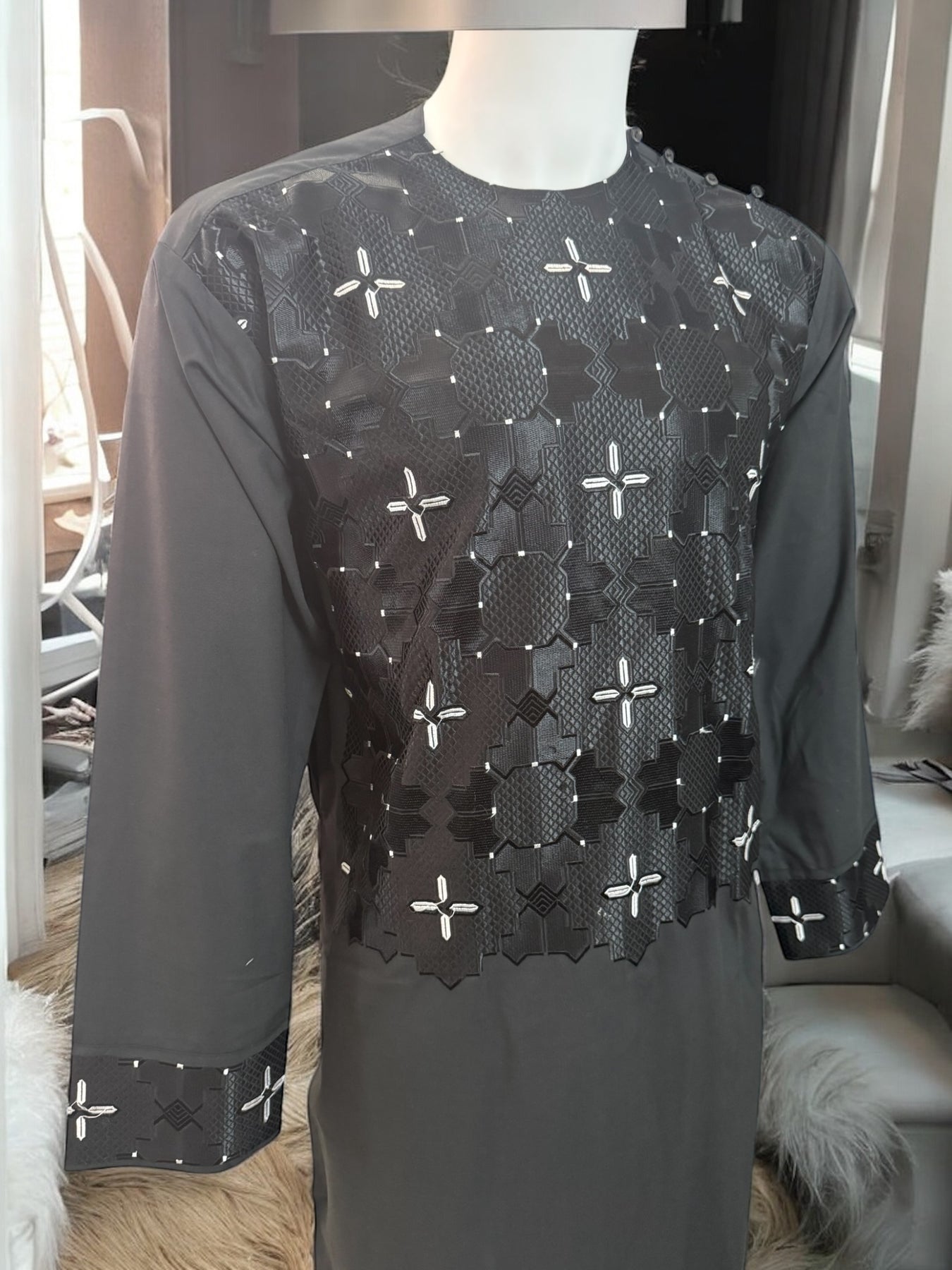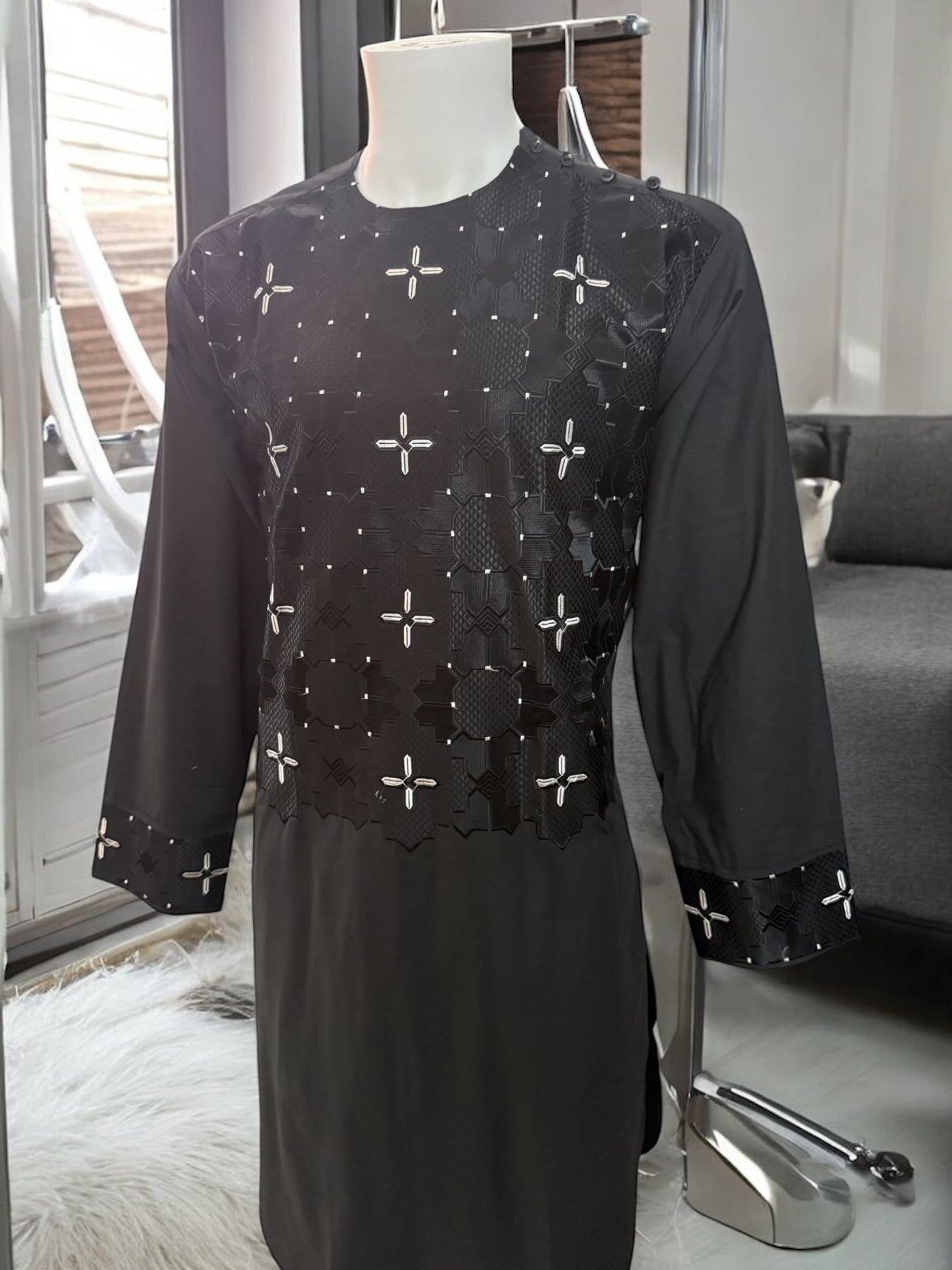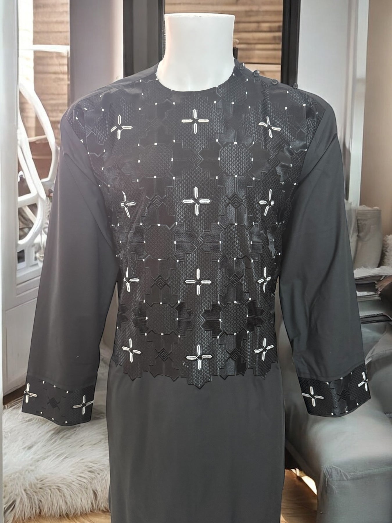 Chest Width: 22.0 in.Shoulder Width: 19.0 in.Body Length: 43.0 in.Sleeve Length: 24.0 in.Sleeve Opening Width: 6.5 in.Pants/tumban: 38.0 in.