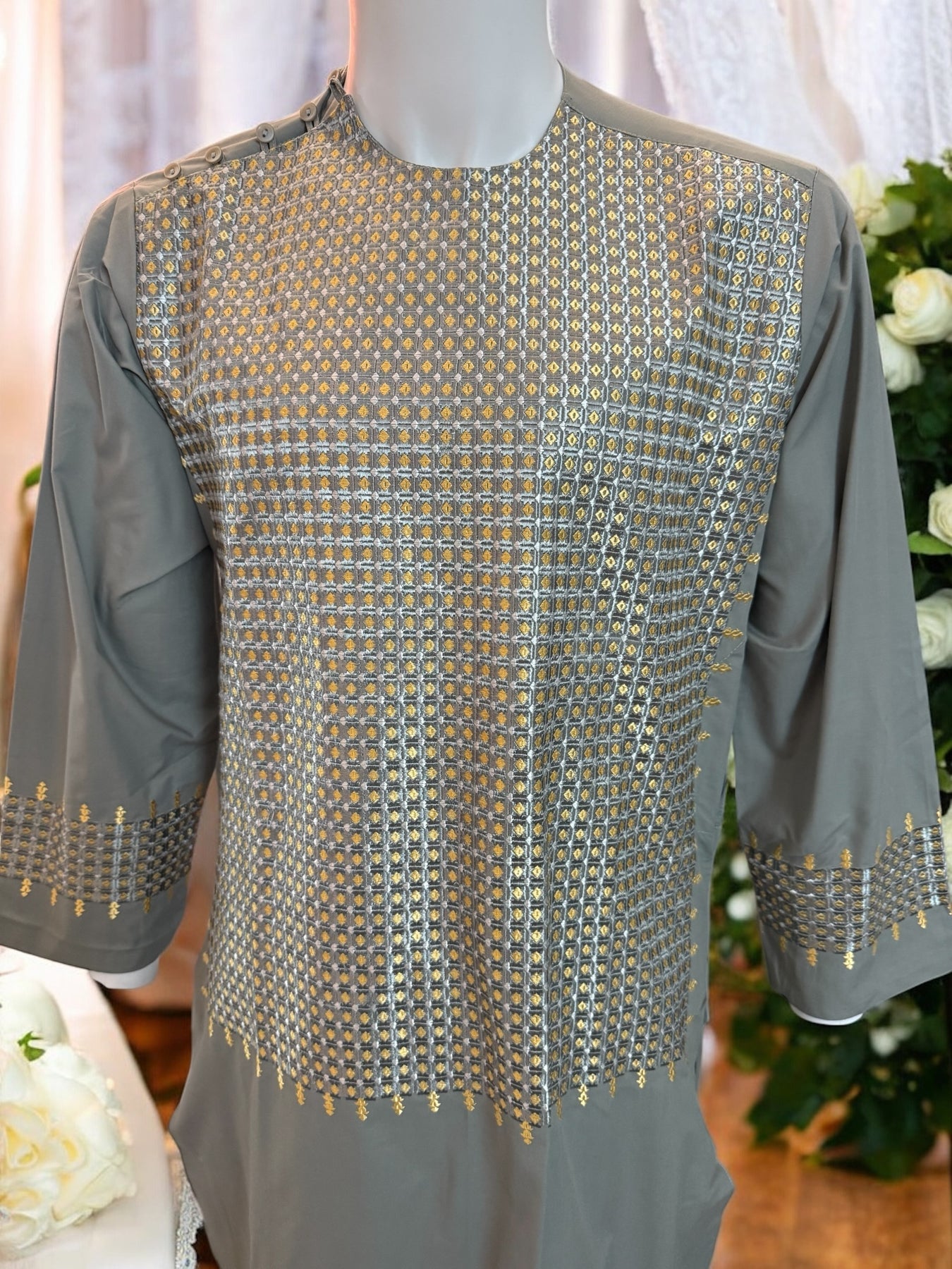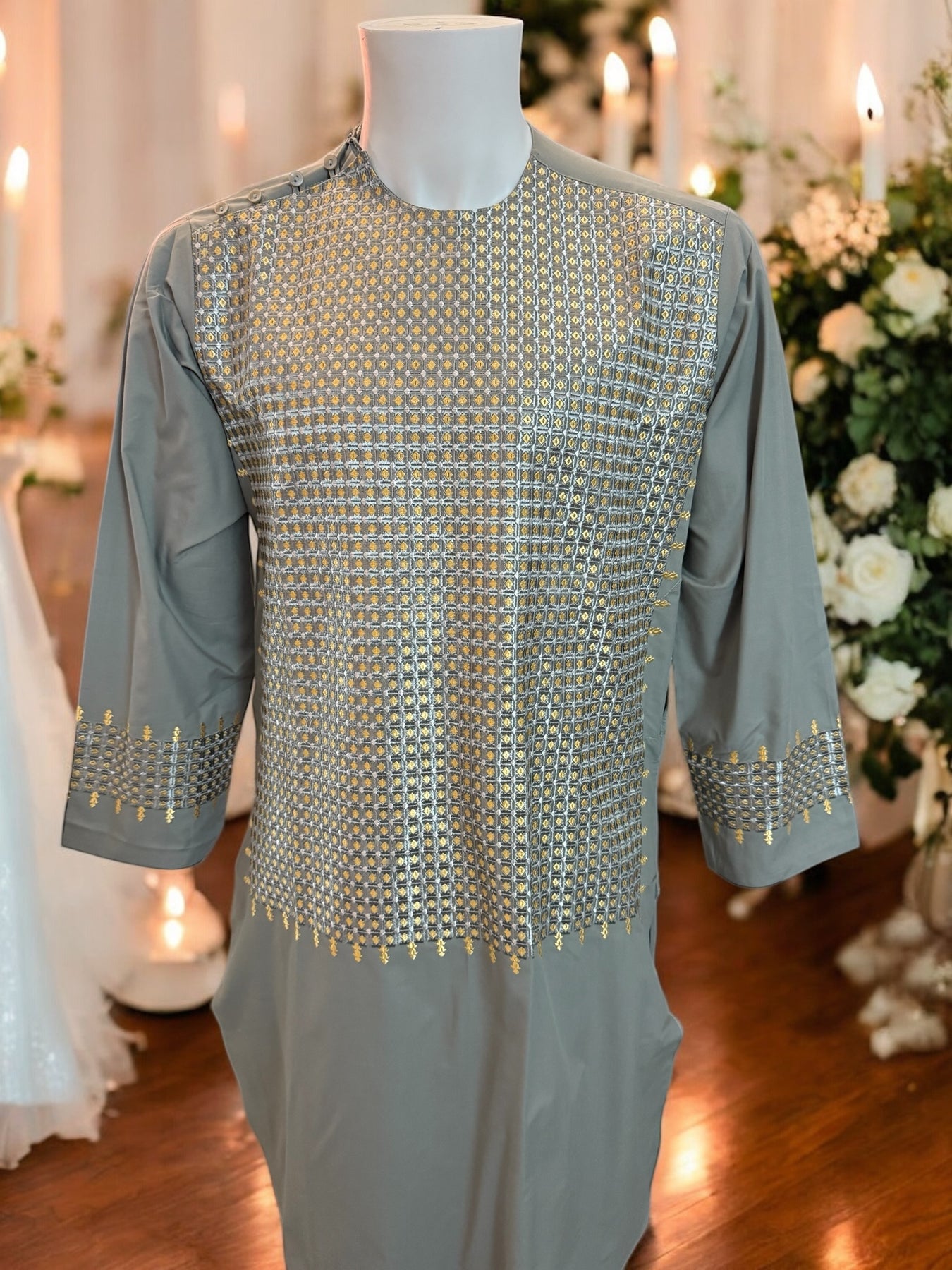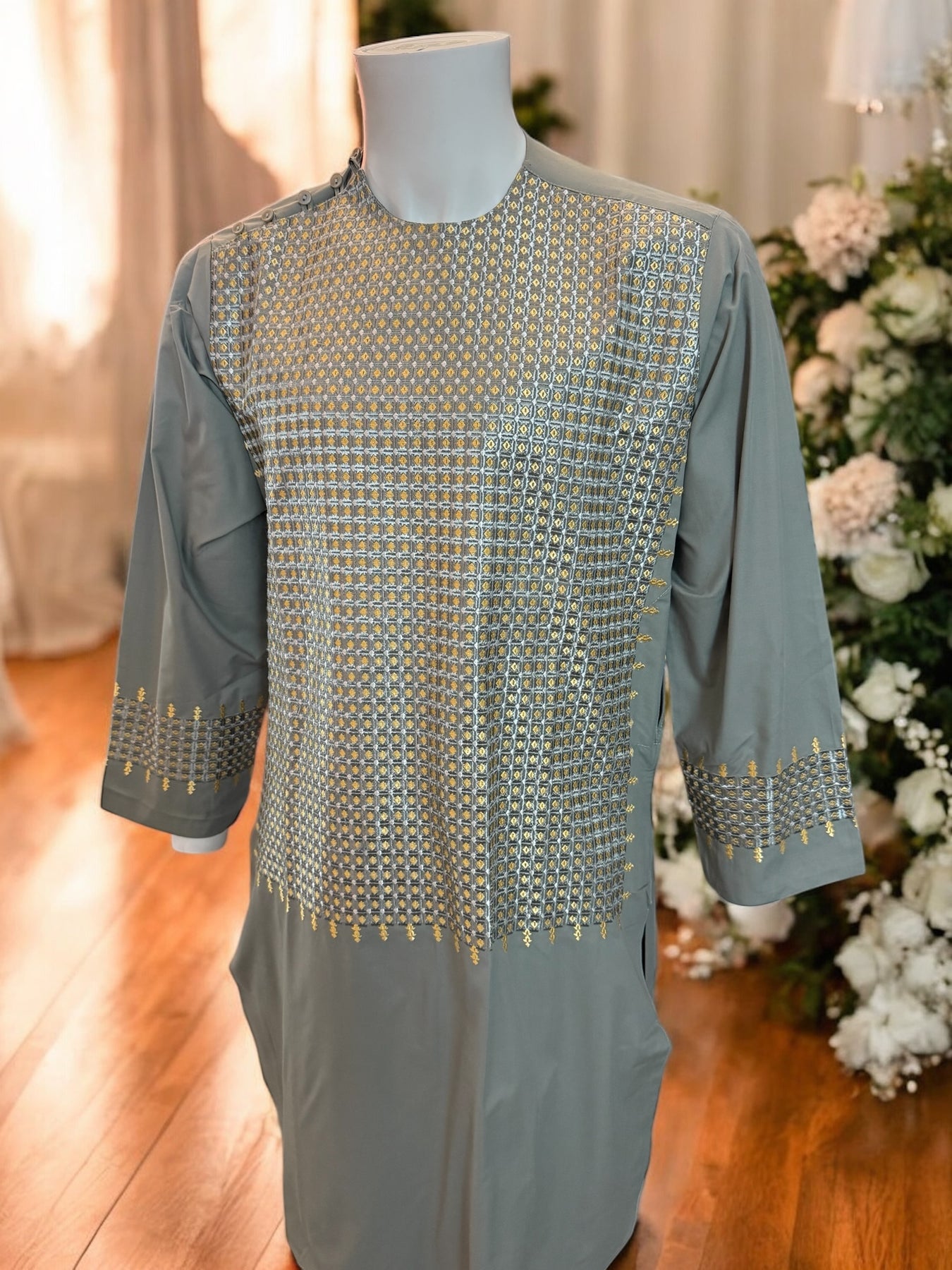 Chest Width: 21.5 in.Shoulder Width: 17.0 in.Body Length: 40.0 in.Sleeve Length: 22.0 in.Sleeve Opening Width: 6.25 in.Pants/tumban: 37.0 in.