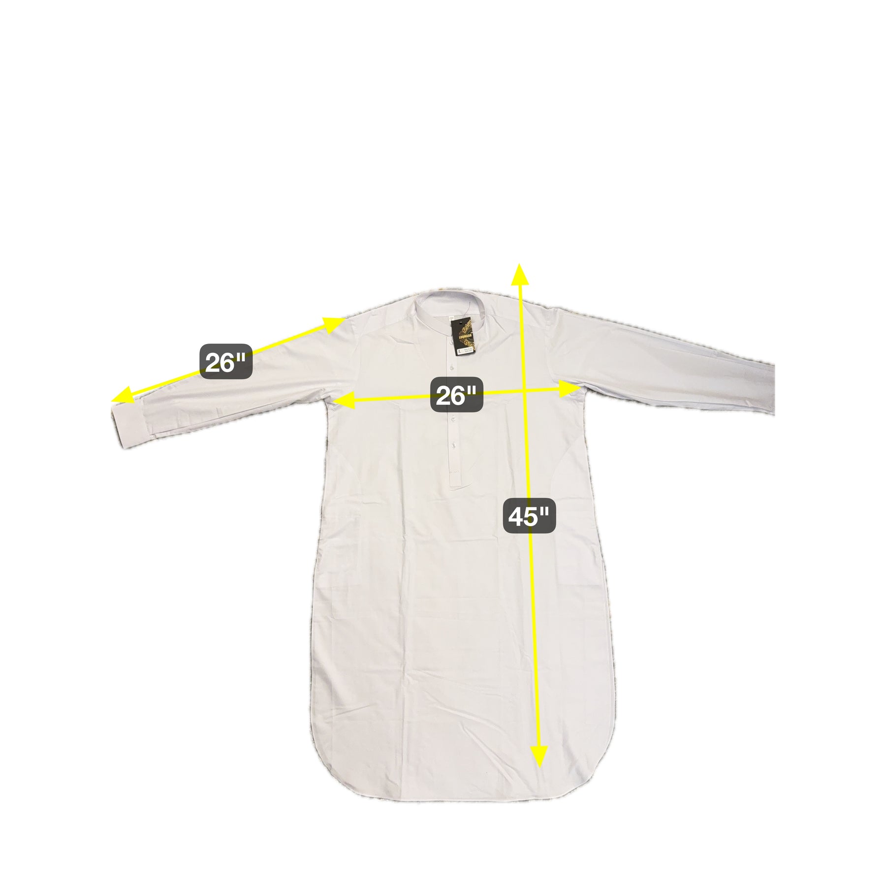 Chest Width: 26.0 in.Shoulder Width: 20.0 in.Body Length: 45.0 in.Sleeve Length: 26.0 in.Sleeve Opening Width: 4.5 in.Pants/tumban: 38.0 in.