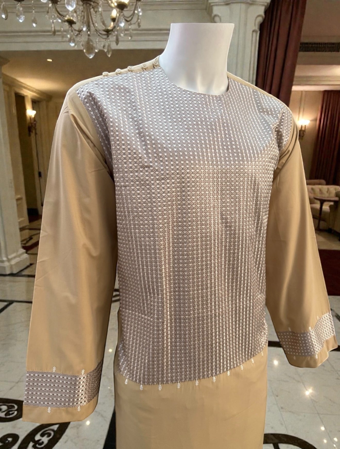 Crafted from a comfortable cotton-blend fabric, this Parahan provides a relaxed fit while still keeping a structured appearance. The embroidered detailing adds texture and character, making it ideal for weddings, celebrations, family gatherings, or formal occasions where cultural attire is appreciated.