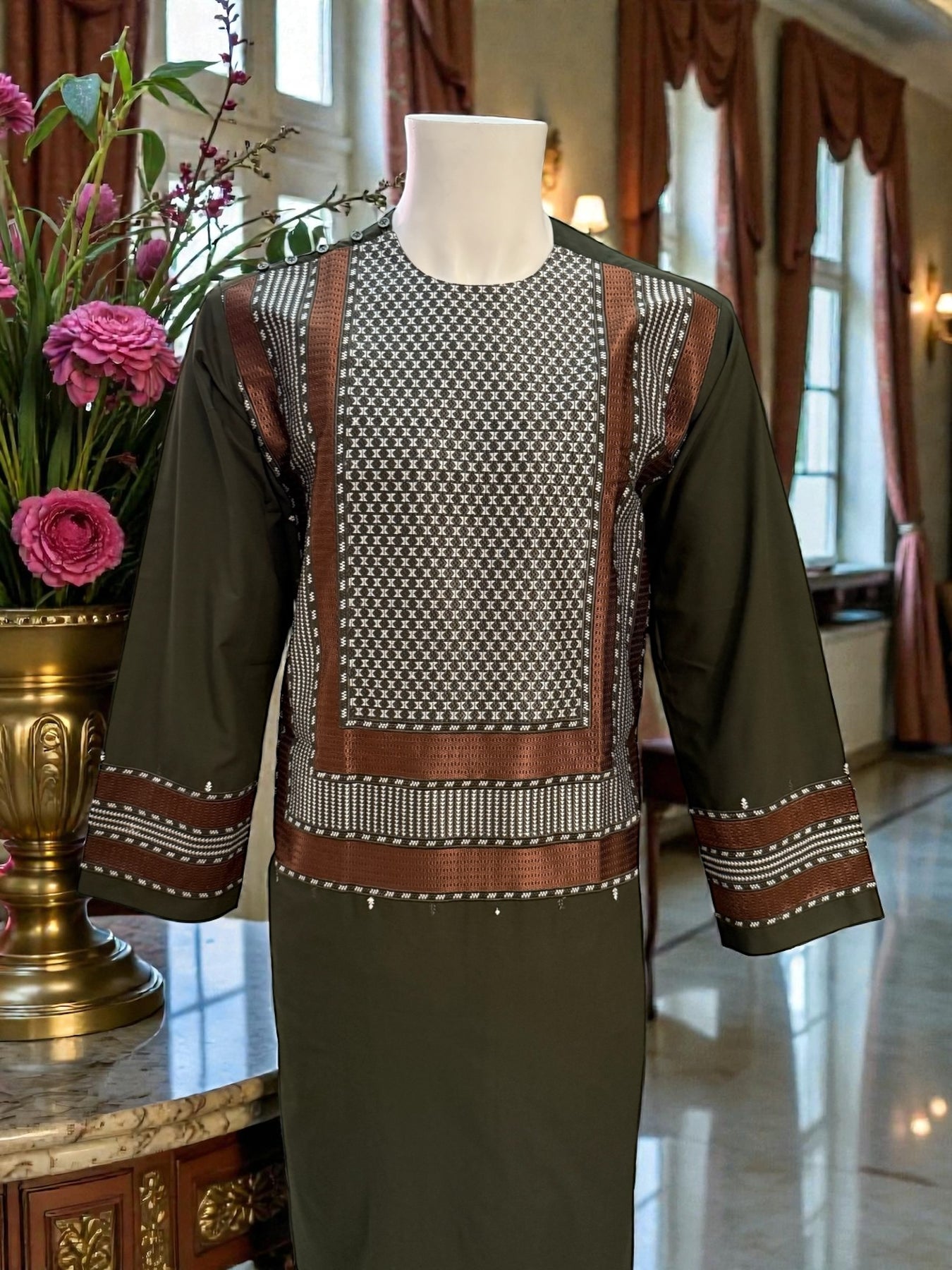 A great choice for anyone looking for a high-quality Afghan men’s outfit with unique embroidery and standout colors.
