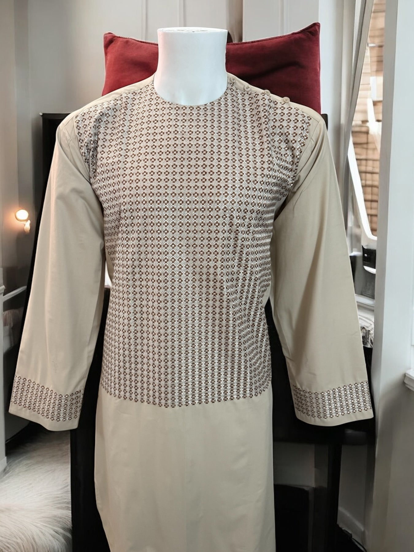 Crafted from breathable fabric, this medium-size ensemble balances tradition with modern simplicity. The subtle embroidery adds texture without overpowering the design, making it suitable for both casual and semi-formal wear.